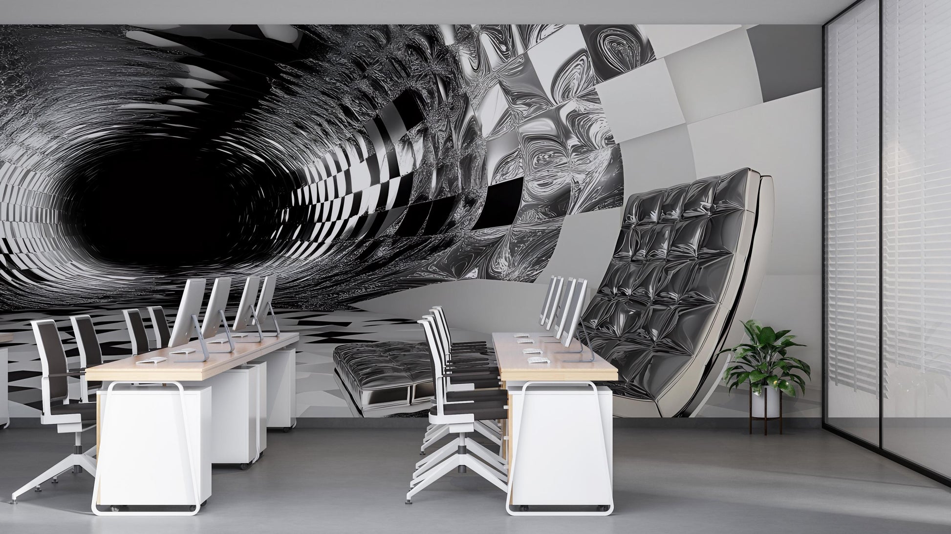 Transform your workspace or gaming room with this eye-catching 3D optical illusion wall mural! Featuring a surreal vortex design with checkered patterns and a dynamic sense of depth, this black hole-inspired artwork is perfect for modern offices, creative studios, or anyone who loves bold, futuristic decor. Printed in high-resolution on premium material, it's easy to install and sure to spark conversation and imagination.