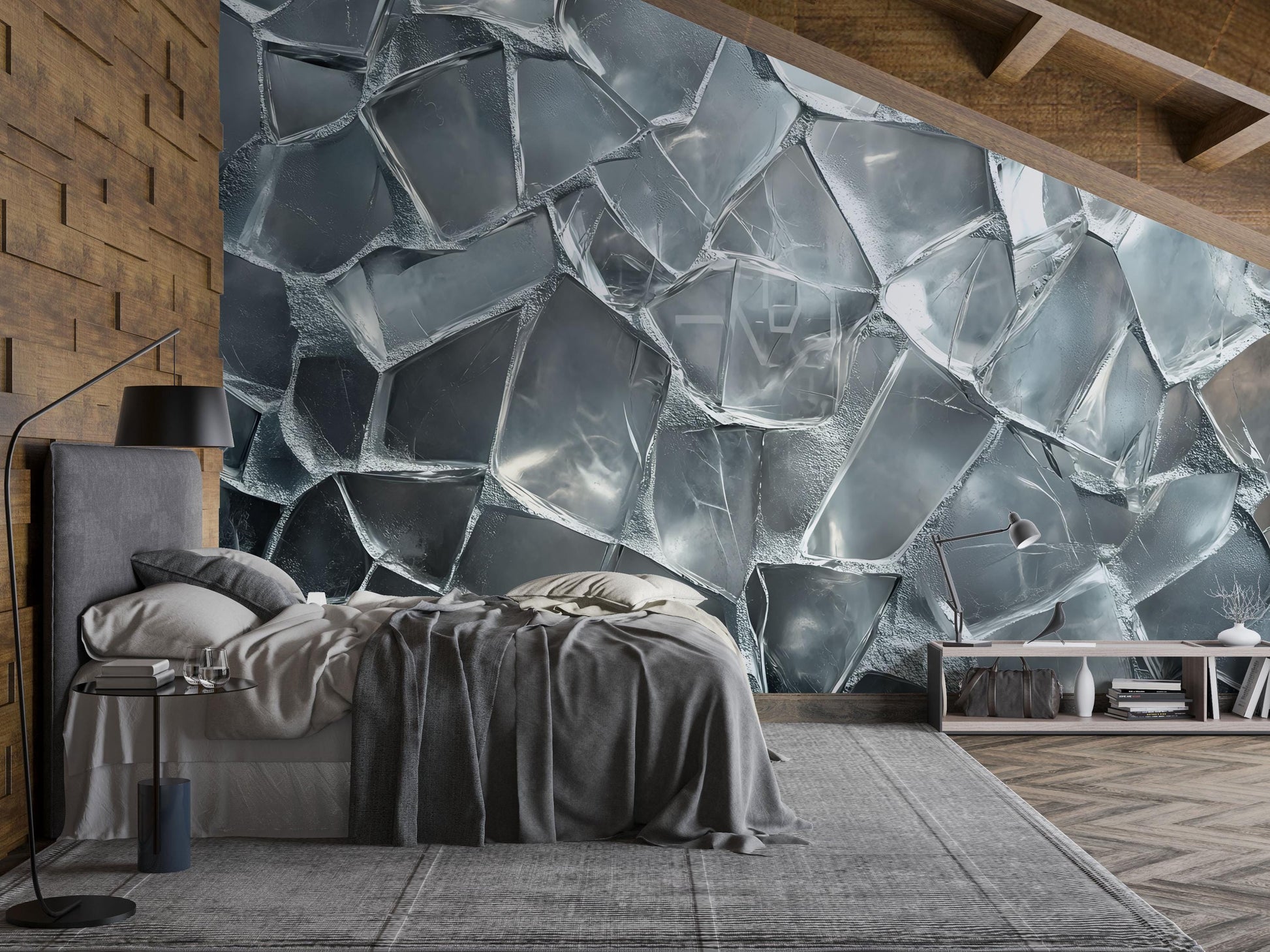 Transform your bedroom into a serene icy escape with this stunning 3D Ice Wall Mural. The ultra-realistic frozen cube texture brings a bold, modern aesthetic to your space, perfect for those who love nature-inspired or abstract wall art. Whether you're updating your bedroom, studio, or lounge, this high-definition mural adds depth, cool tones, and artistic flair to any interior.