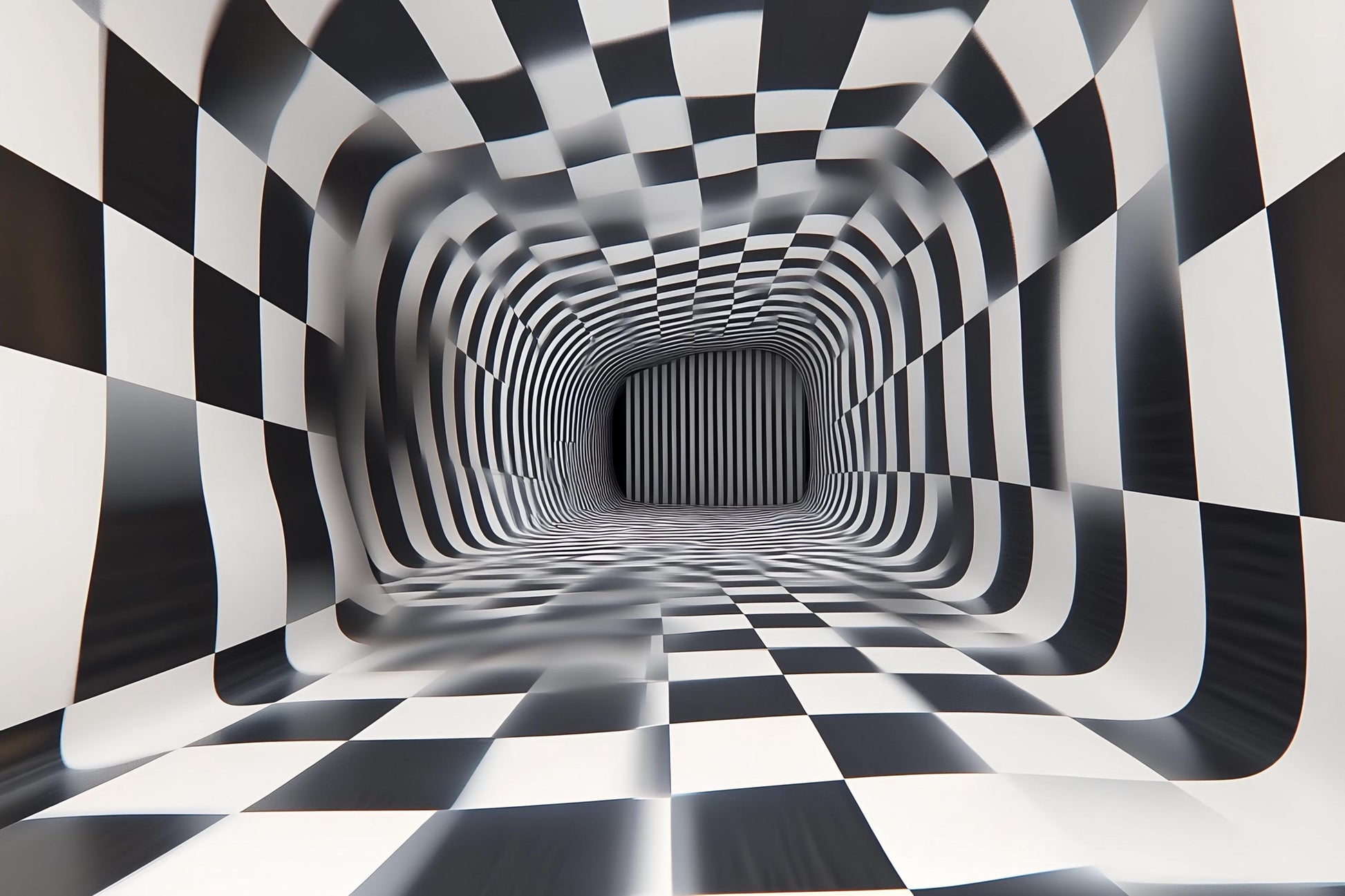 Create a mind-bending 3D effect in your room with this Black & White Optical Illusion Tunnel Wall Mural. The checkered design transforms your wall into a mesmerizing tunnel, adding depth, movement, and a futuristic vibe to your space.