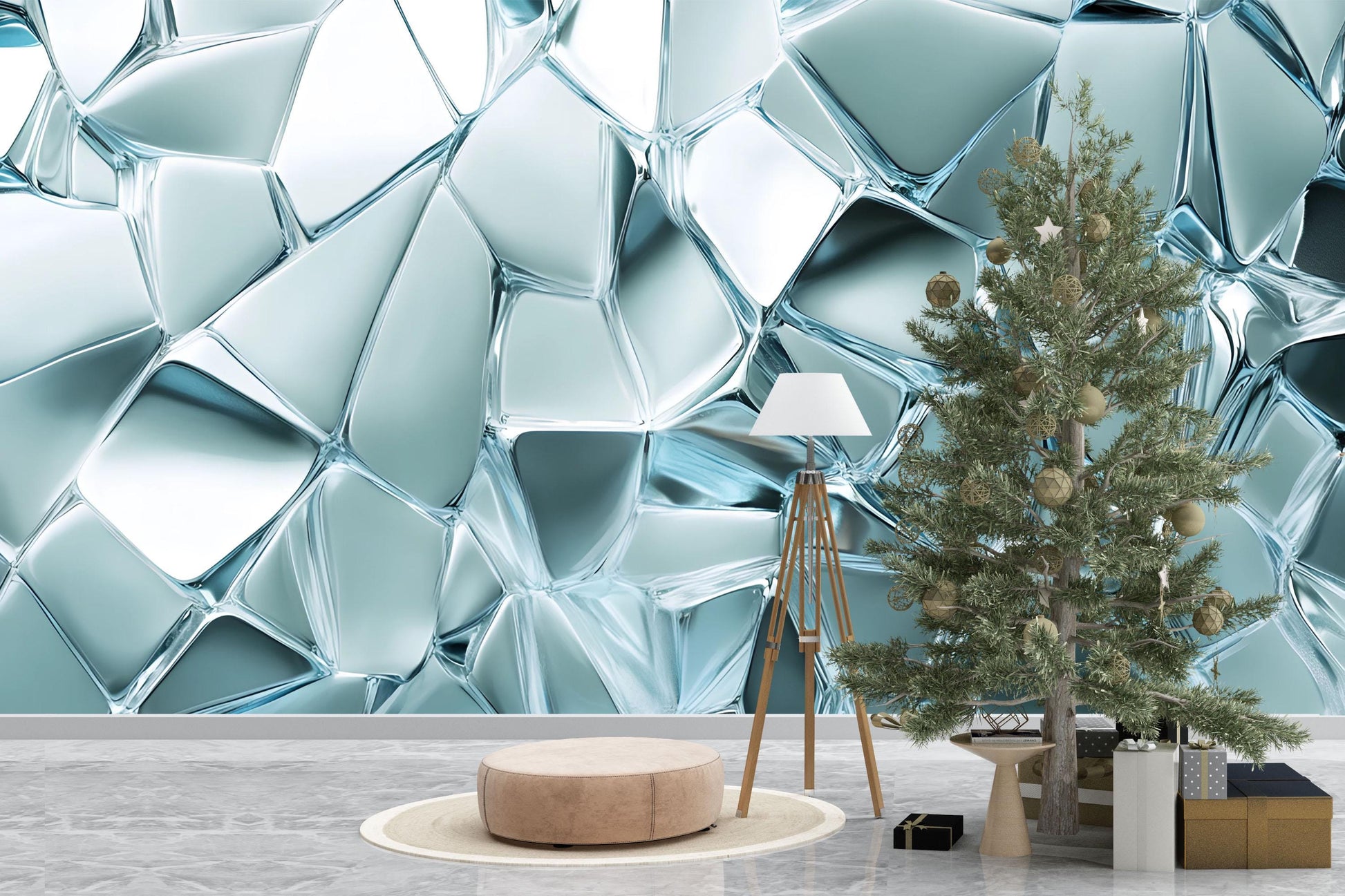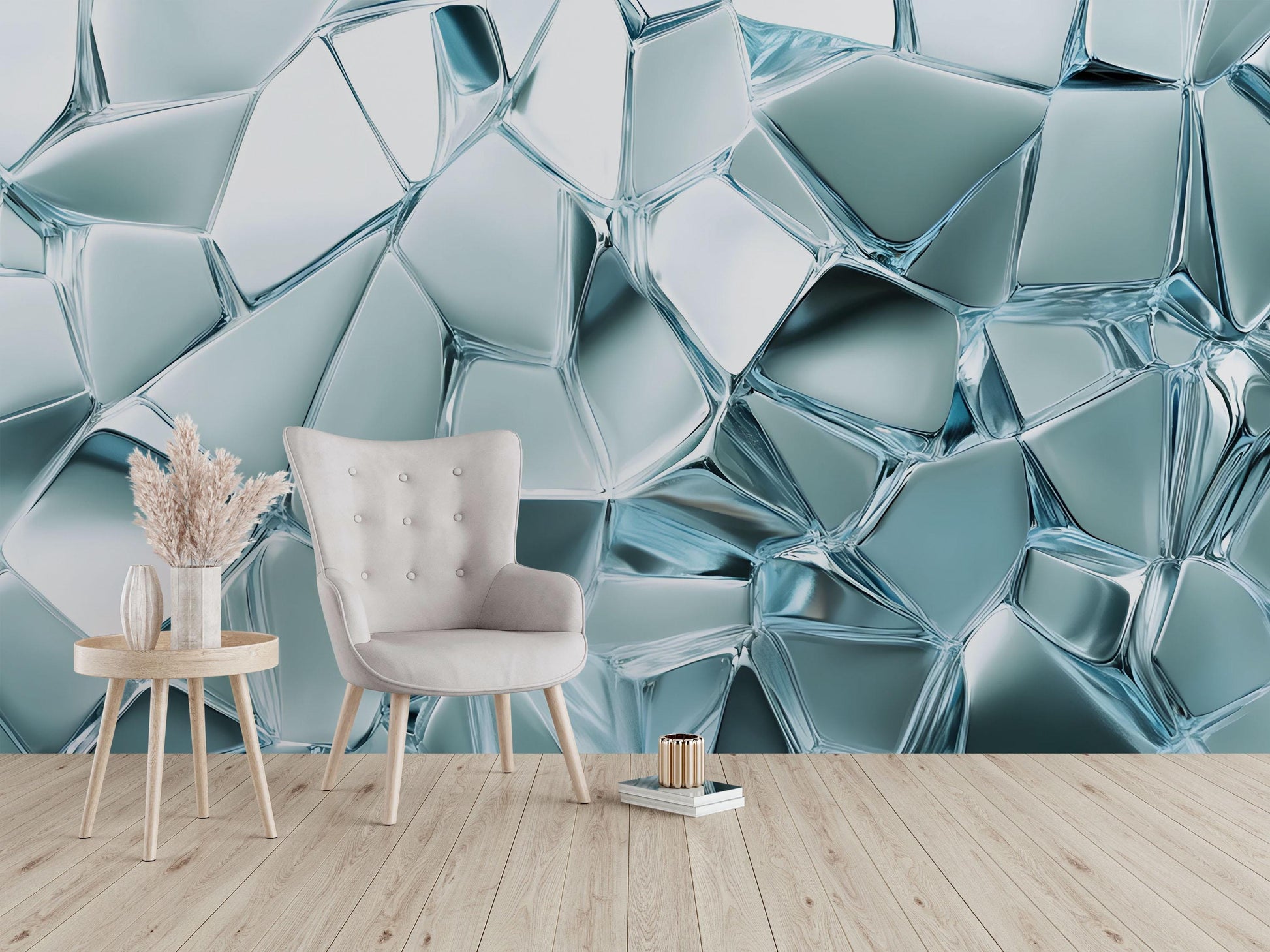 Abstract Glass Crystal Wall Mural – Modern 3D Ice Effect Wallpaper – Cool Blue Textured Accent Wall for Living Room or Office