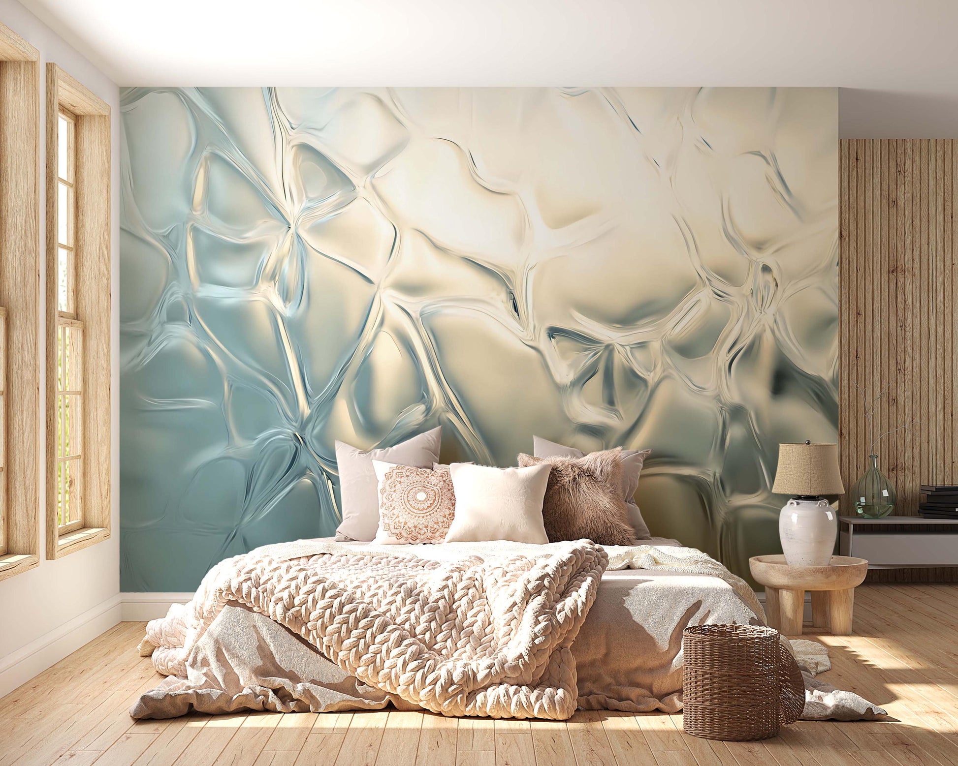 Transform your space with this stunning abstract ice-glass effect wall mural. Featuring soft gradients of beige, cream, and blue with a flowing, three-dimensional texture, this wallpaper creates a calming yet luxurious atmosphere. Perfect for bedrooms, living rooms, or creative studios, it pairs beautifully with neutral furnishings and natural light. Easy to install, peel-and-stick or traditional paste options available. Elevate your interior with modern art for your walls.