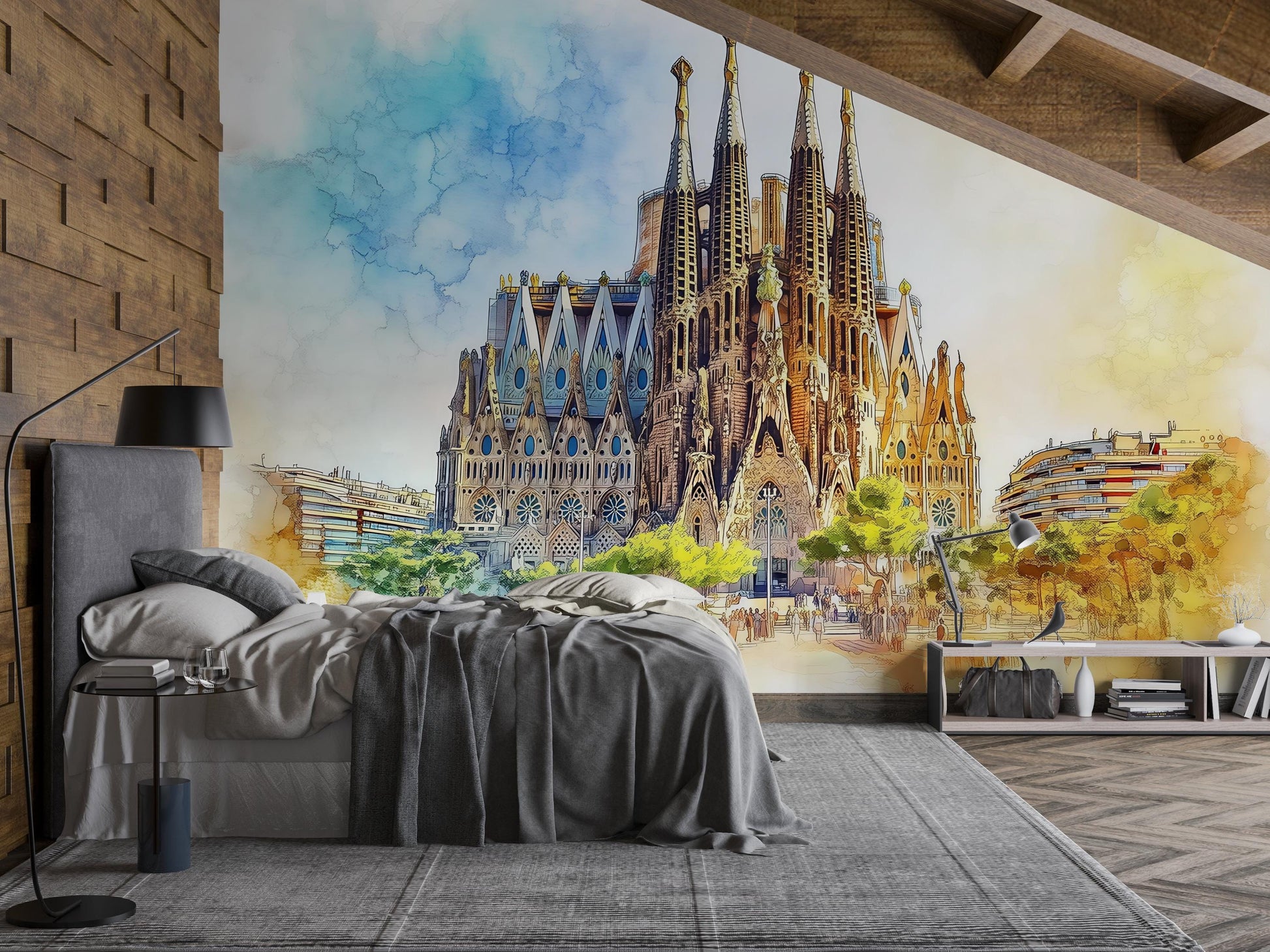 Bring the architectural wonder of Barcelona’s Sagrada Família into your home with this breathtaking mural. Designed in watercolor style, this wall art captures the intricate towers and Gothic-modernist details of Antoni Gaudí’s masterpiece. Perfect for anyone who loves Spanish culture, European landmarks, or architectural wall décor, it makes a bold centerpiece for any room.