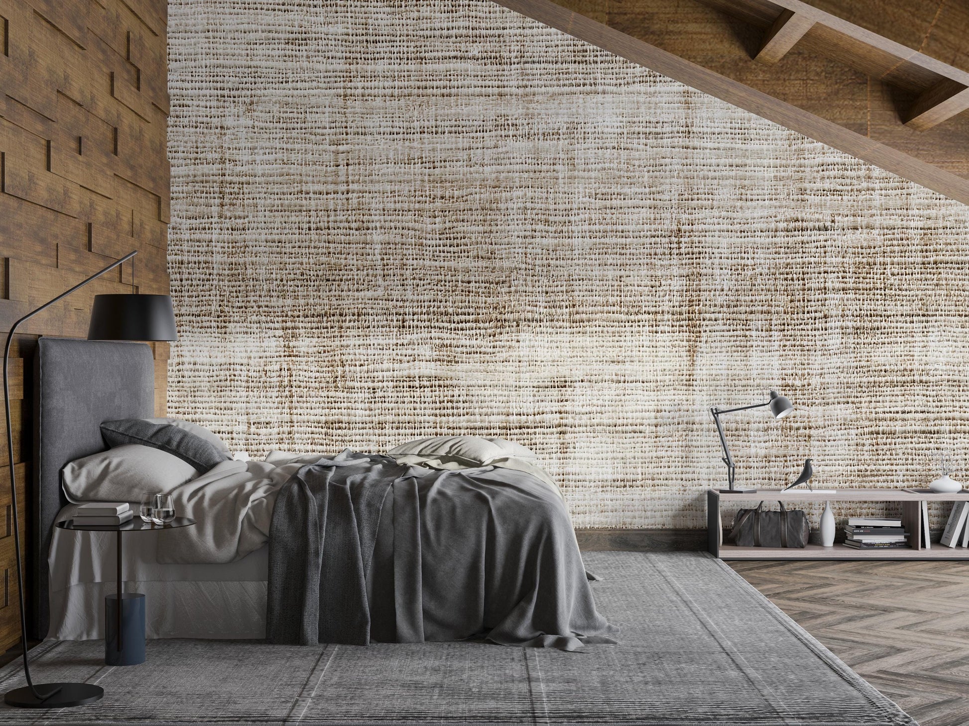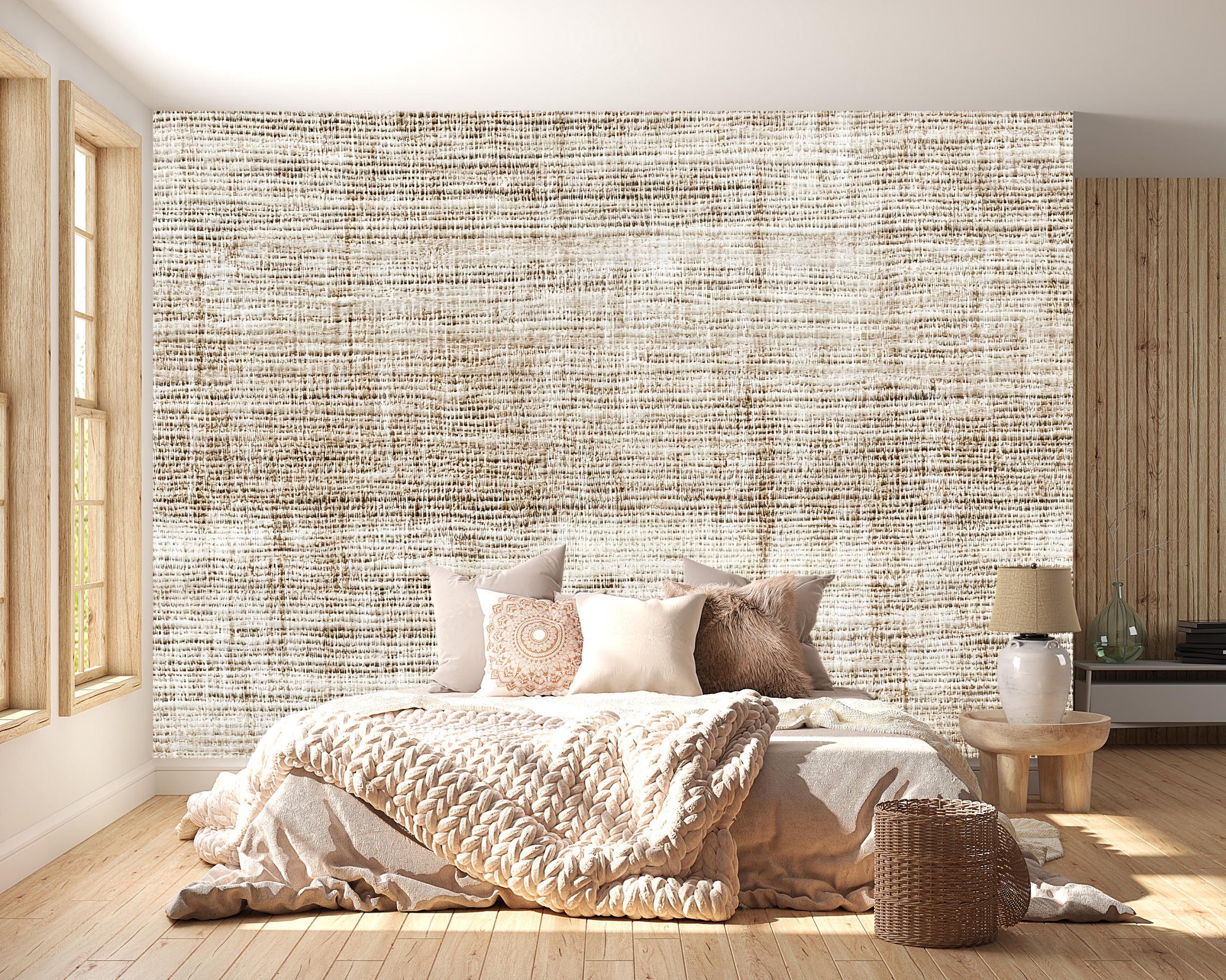 Add timeless elegance to your walls with this beige linen textured wallpaper mural. Designed to mimic the look of natural woven fabric, this wallpaper brings a warm, neutral, and minimalist feel to any space.