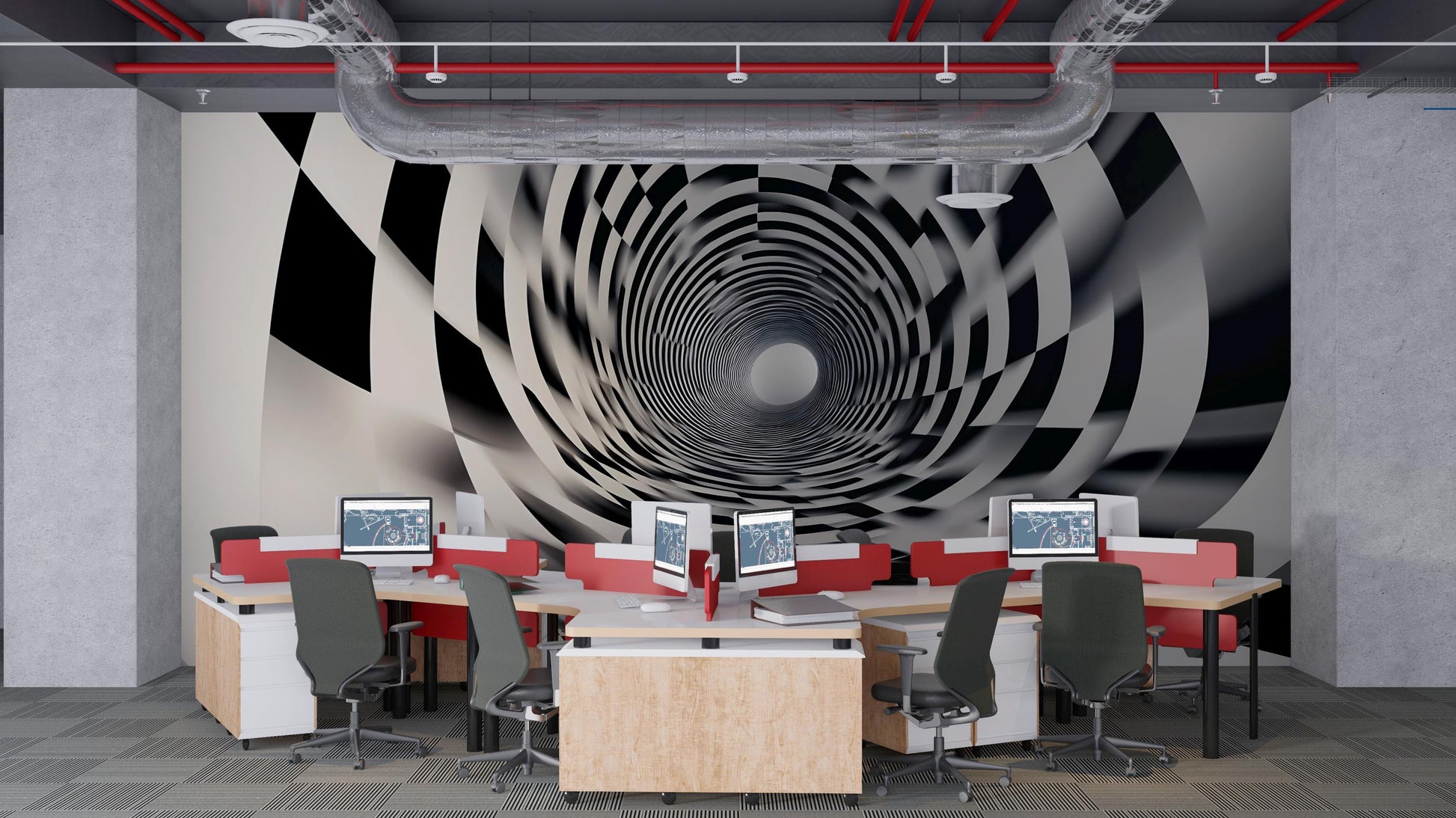 Ideal for anyone who loves minimalist design, bold geometry, or mind-bending art, this mural instantly adds a futuristic and stylish touch to any room.