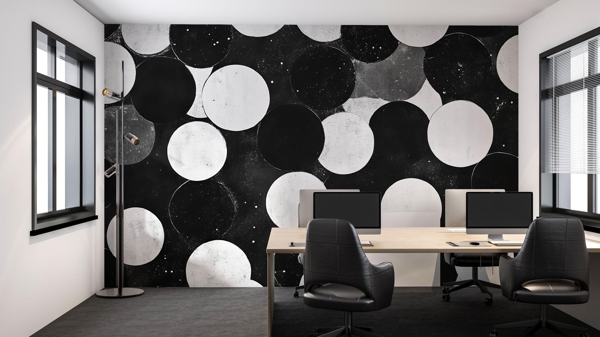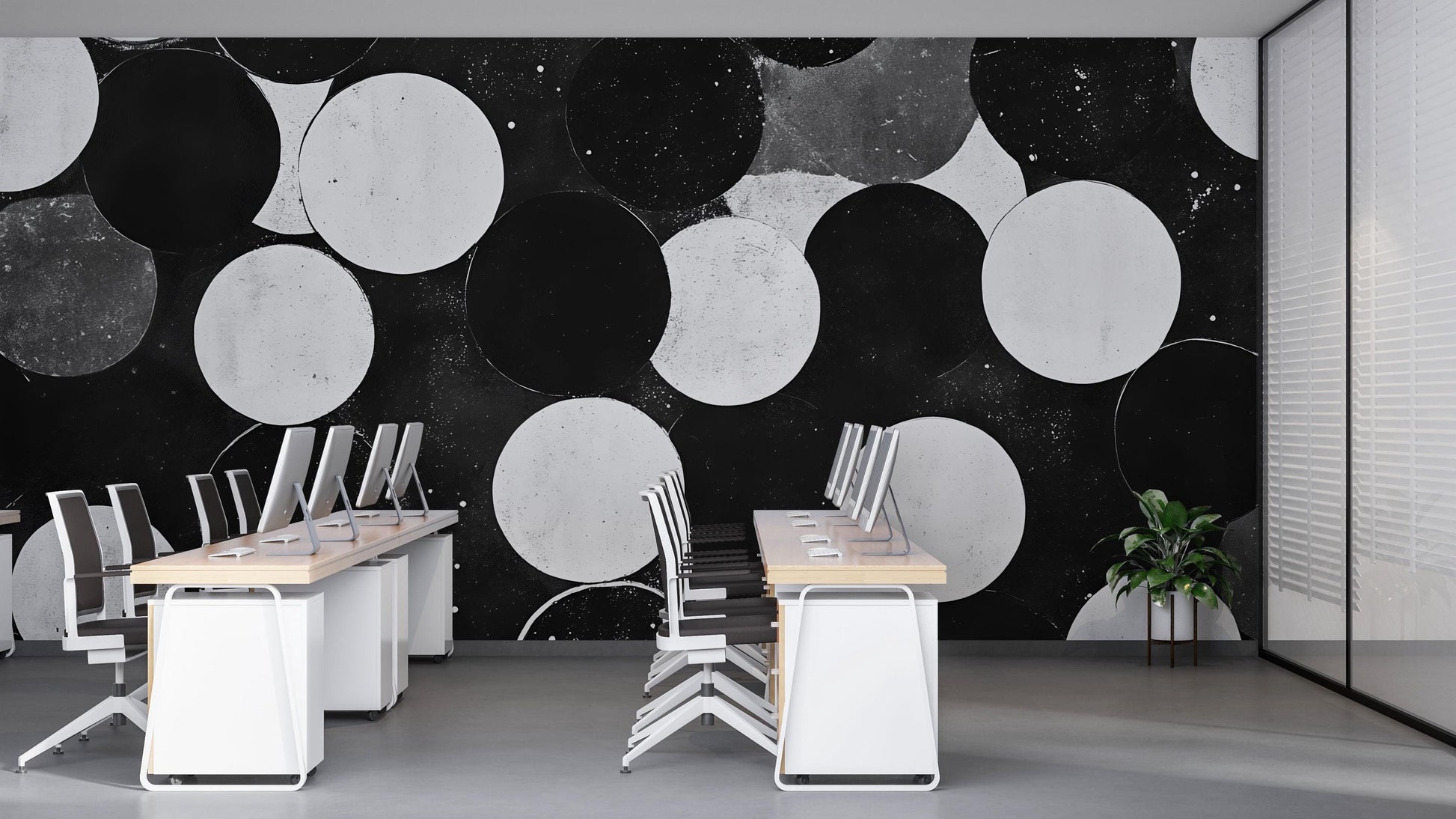 Add a sleek, modern touch to your space with this black and white circle wall mural. Featuring bold overlapping geometric circles, this mural creates a striking statement wall that works perfectly in offices, living rooms, studios, and modern interiors.