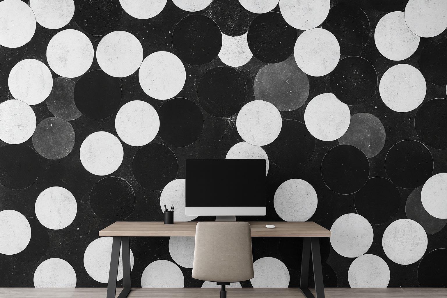 Black and White Circle Wall Mural – Modern Geometric Wallpaper, Bold Accent Wall for Office or Living Room