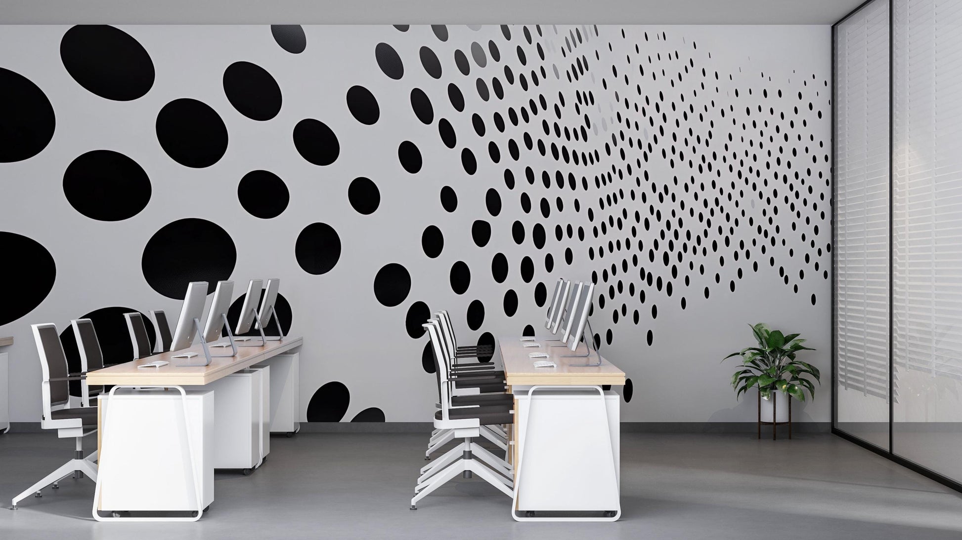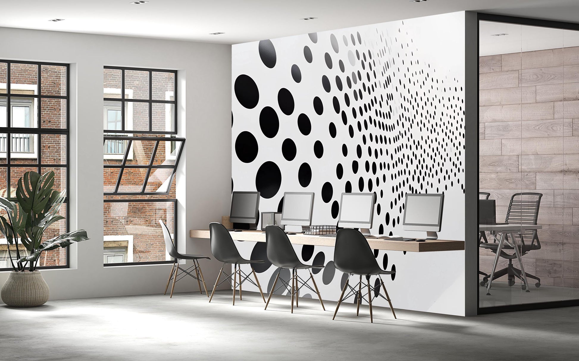 Black Dot Gradient Wall Mural – Modern Optical Illusion Wallpaper, Geometric Accent Wall for Office or Home