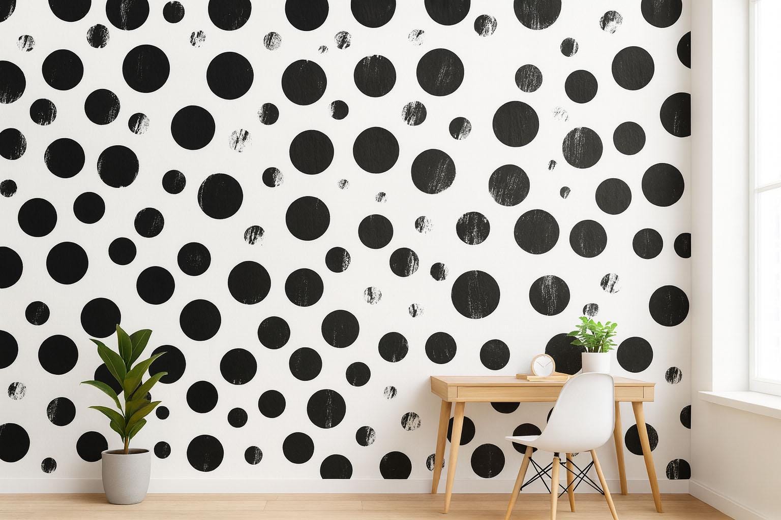 Black Dot Wall Mural – Modern Distressed Polka Dot Wallpaper, Bold Geometric Accent Wall for Office or Living Room