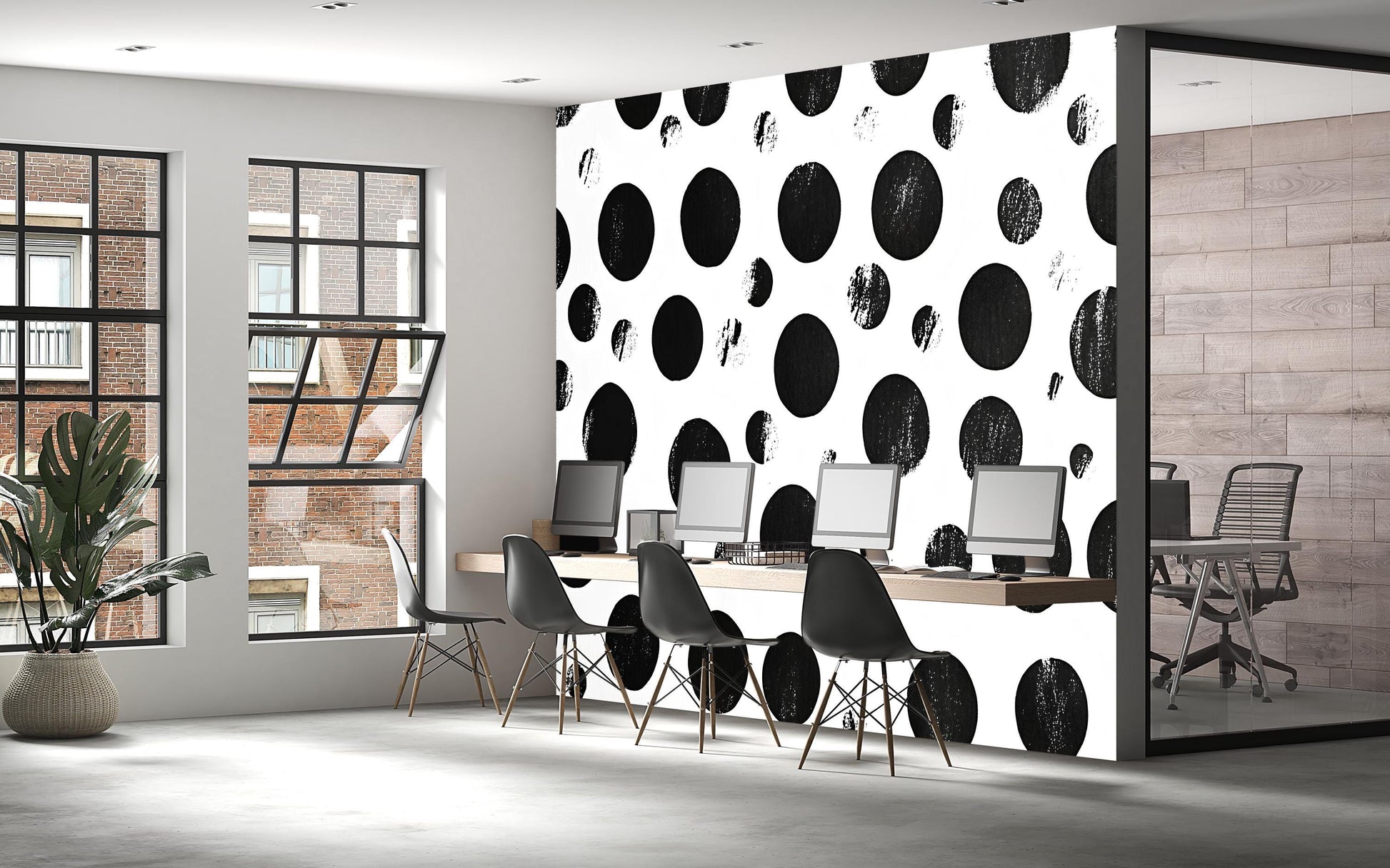 Add a modern edge to your interior with this black dot wall mural, featuring bold distressed polka dots on a clean white background. The textured effect brings depth and artistic character, making it the perfect statement wall for offices, creative studios, or contemporary homes.