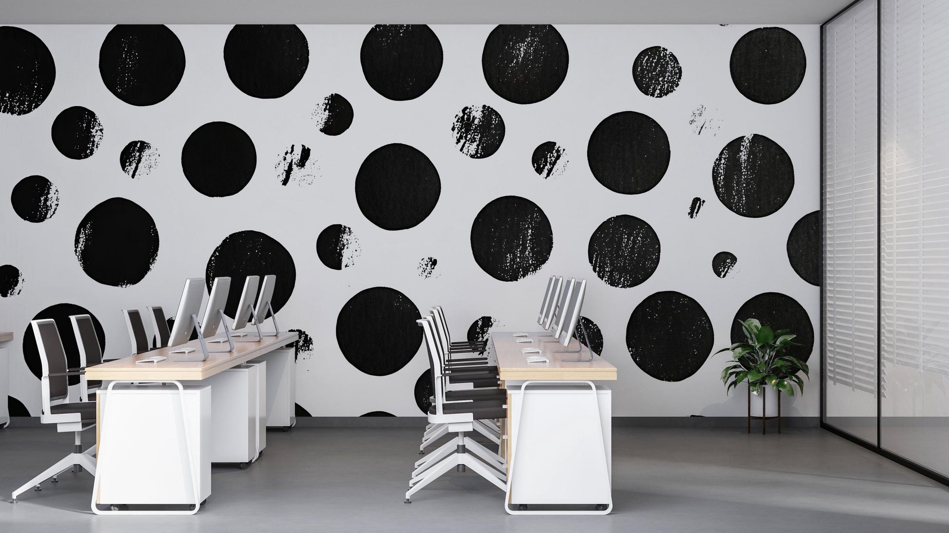 Transform your walls into an art-inspired space with this modern polka dot mural.