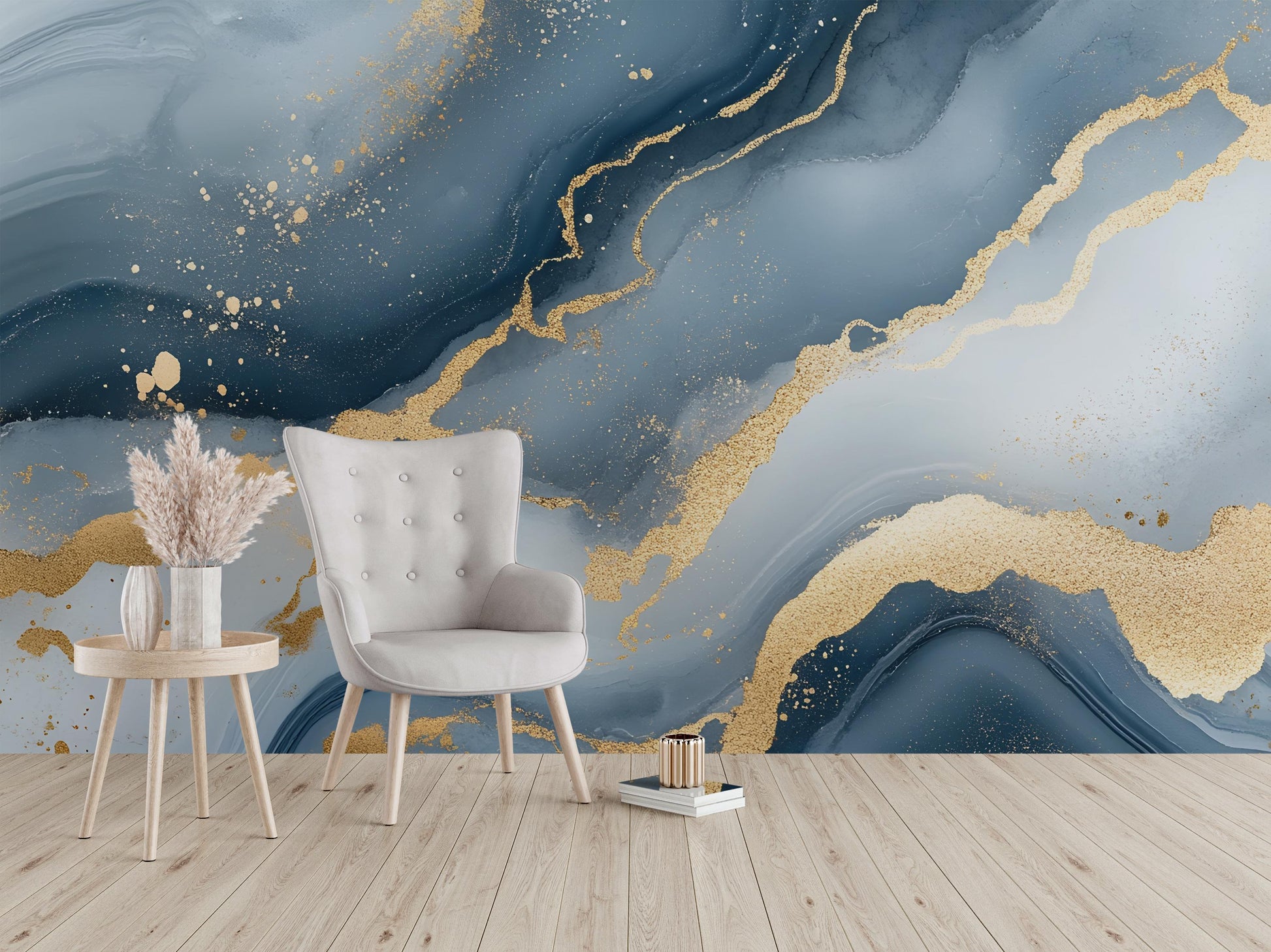 Blue Gold Marble Wall Mural – Abstract Luxury Wallpaper