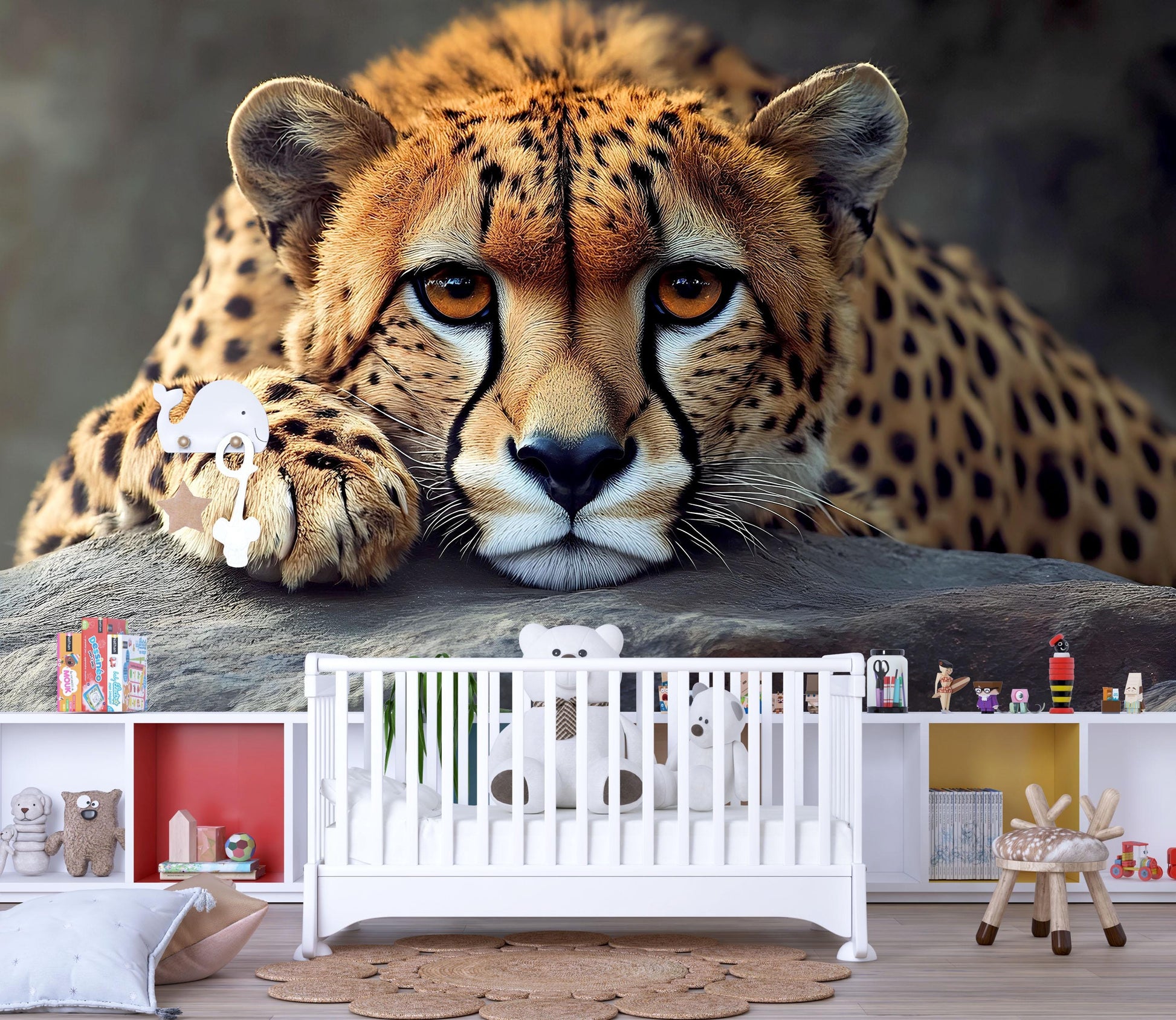Cheetah Wall Mural – Realistic Big Cat Wildlife Wallpaper for Nursery or Bedroom