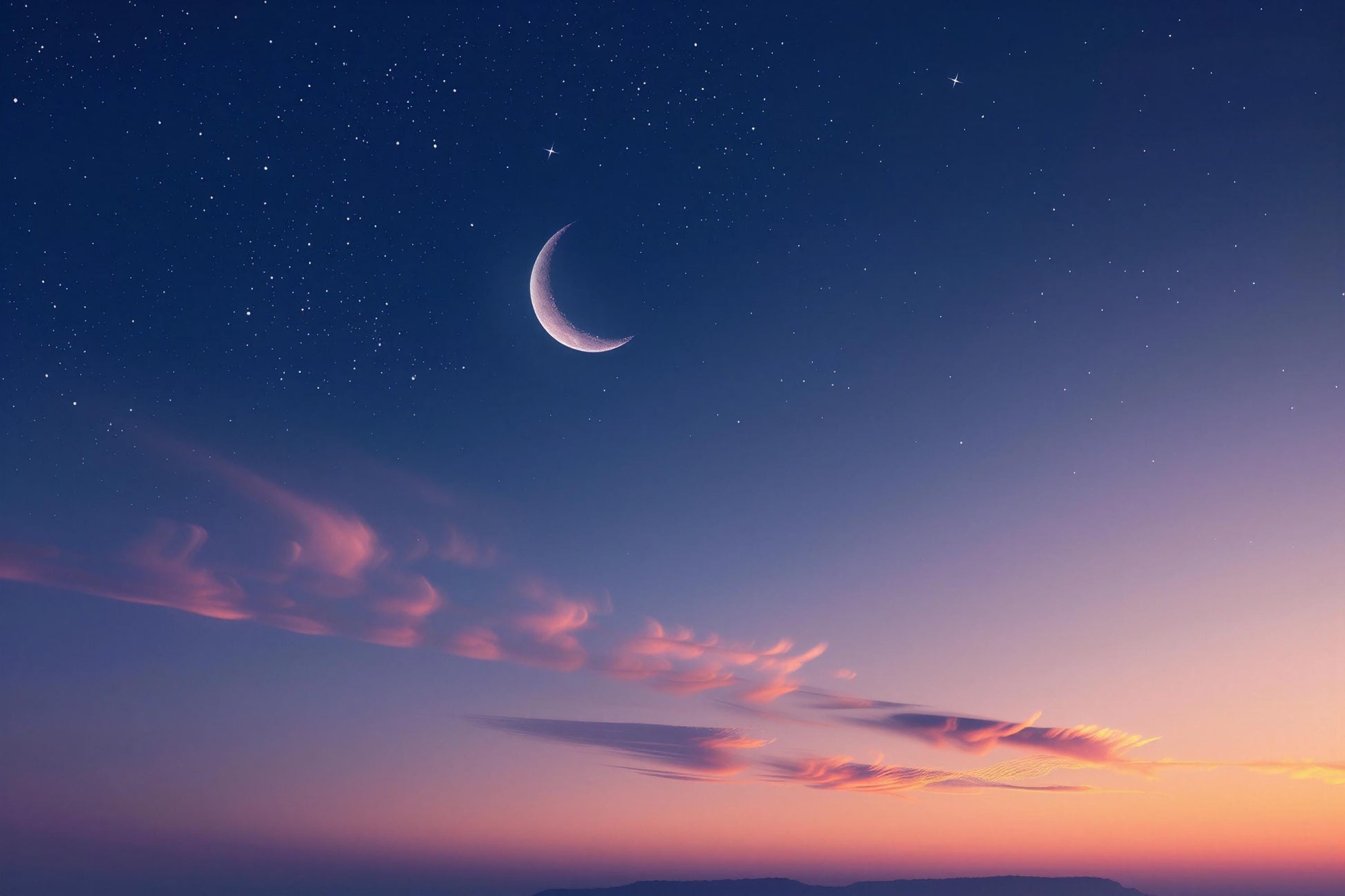 Create a peaceful and dreamy atmosphere with this Crescent Moon Wall Mural. Featuring a glowing crescent moon, twinkling stars, and soft pink sunset clouds fading into twilight, this mural brings calm celestial beauty into your home. Perfect for bedrooms, nurseries, meditation rooms, or living spaces, it makes a magical accent wall.