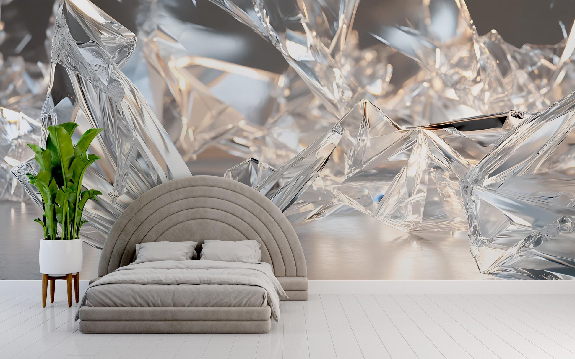 Transform your bedroom into a luxurious sanctuary with this stunning crystal wall mural. Featuring a high-definition 3D abstract design of sparkling crystal shards, this mural adds a modern and elegant aesthetic to any interior. Perfect for bedrooms, living rooms, or creative spaces, this peel-and-stick or paste-on wallpaper brings light, texture, and a sense of sophistication. Printed on premium material with vibrant clarity, it's a statement piece for crystal lovers and contemporary design enthusiasts.