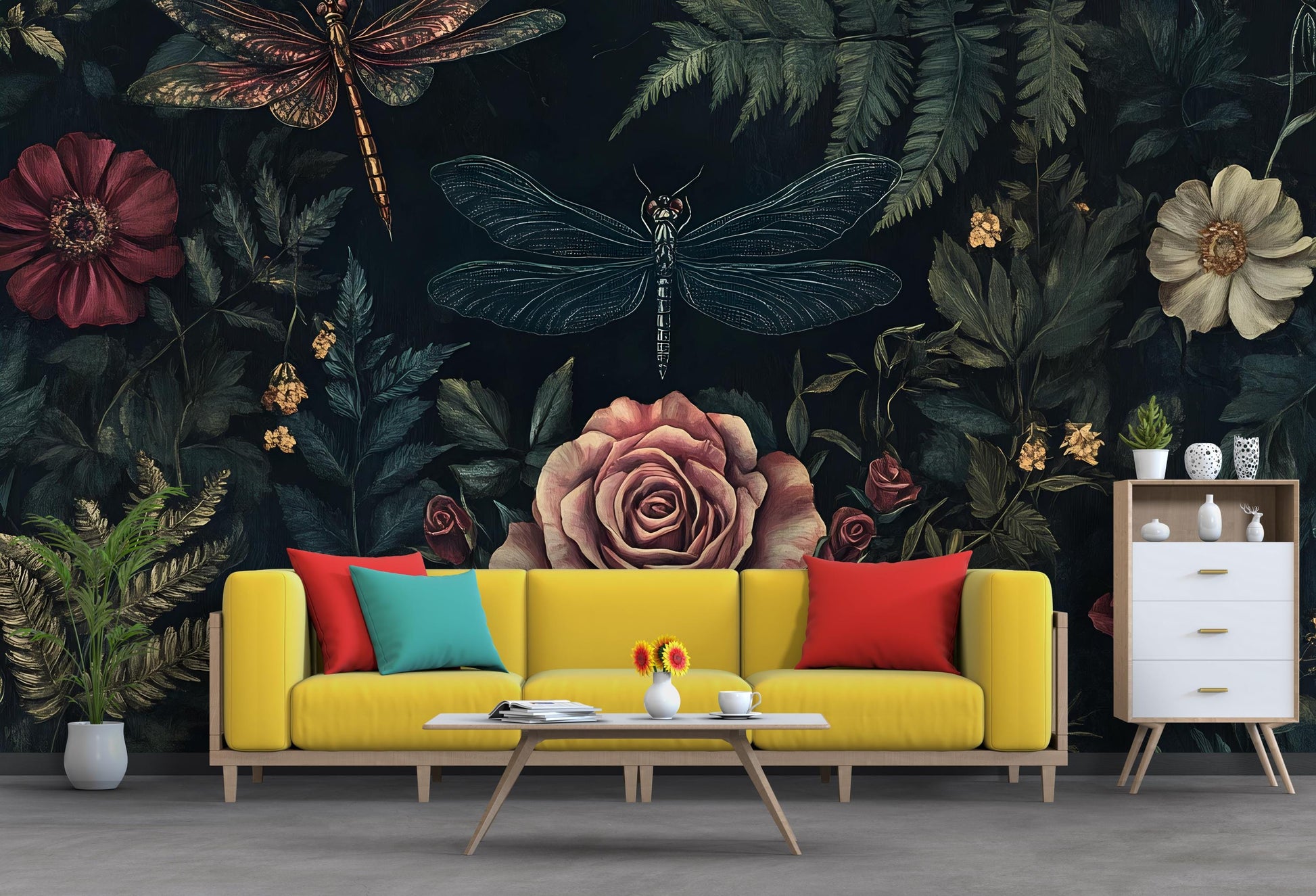Bring timeless elegance and moody charm to your space with this dark botanical wall art print, featuring vintage dragonflies, roses, and wildflowers against a rich deep background. Perfect for Victorian décor, cottagecore lovers, or modern gothic interiors, this artwork blends natural beauty with dramatic style.