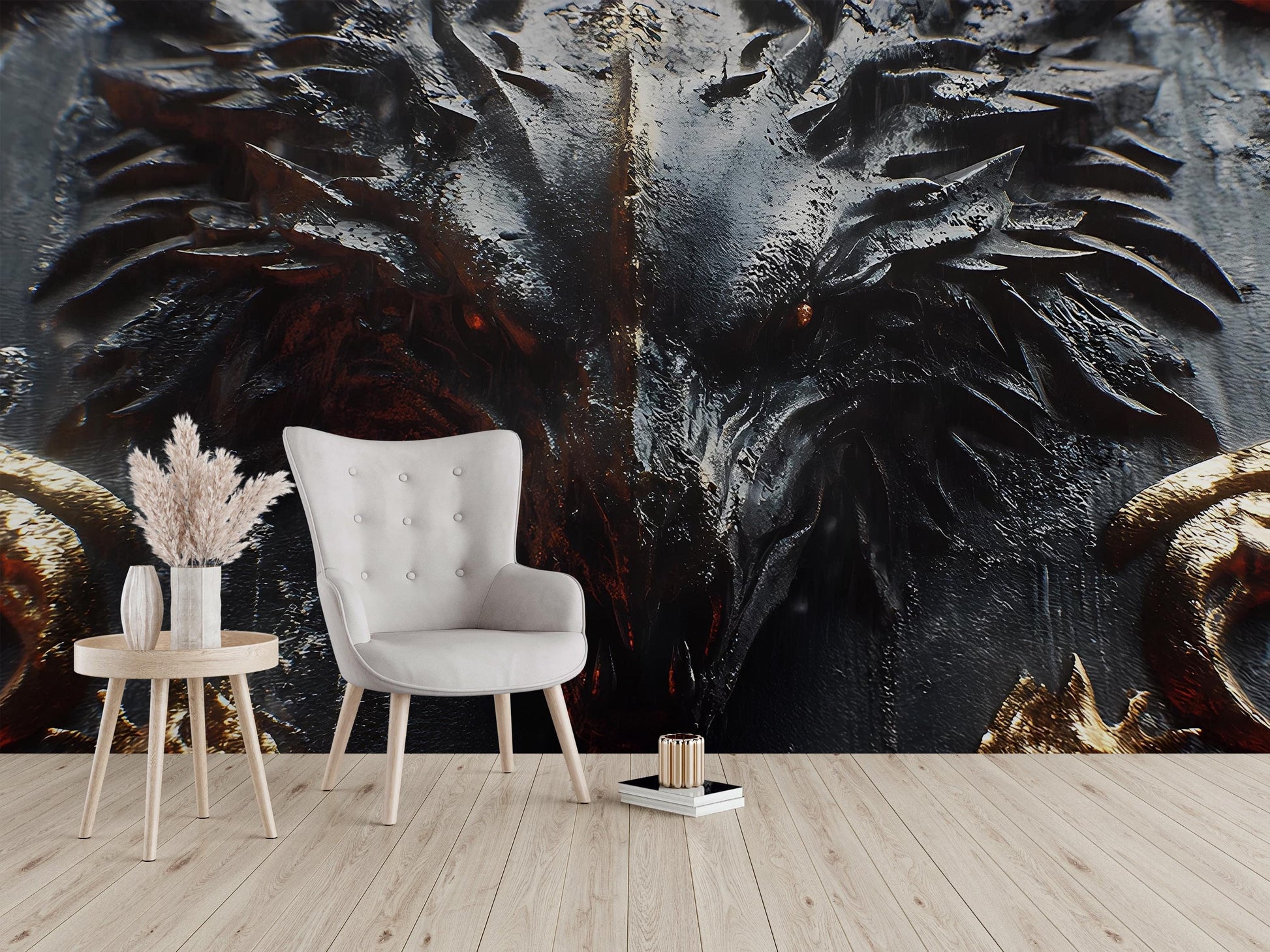 Dark Fantasy Dragon Wall Mural | Gothic Fire Beast Art | Large Wall Decor