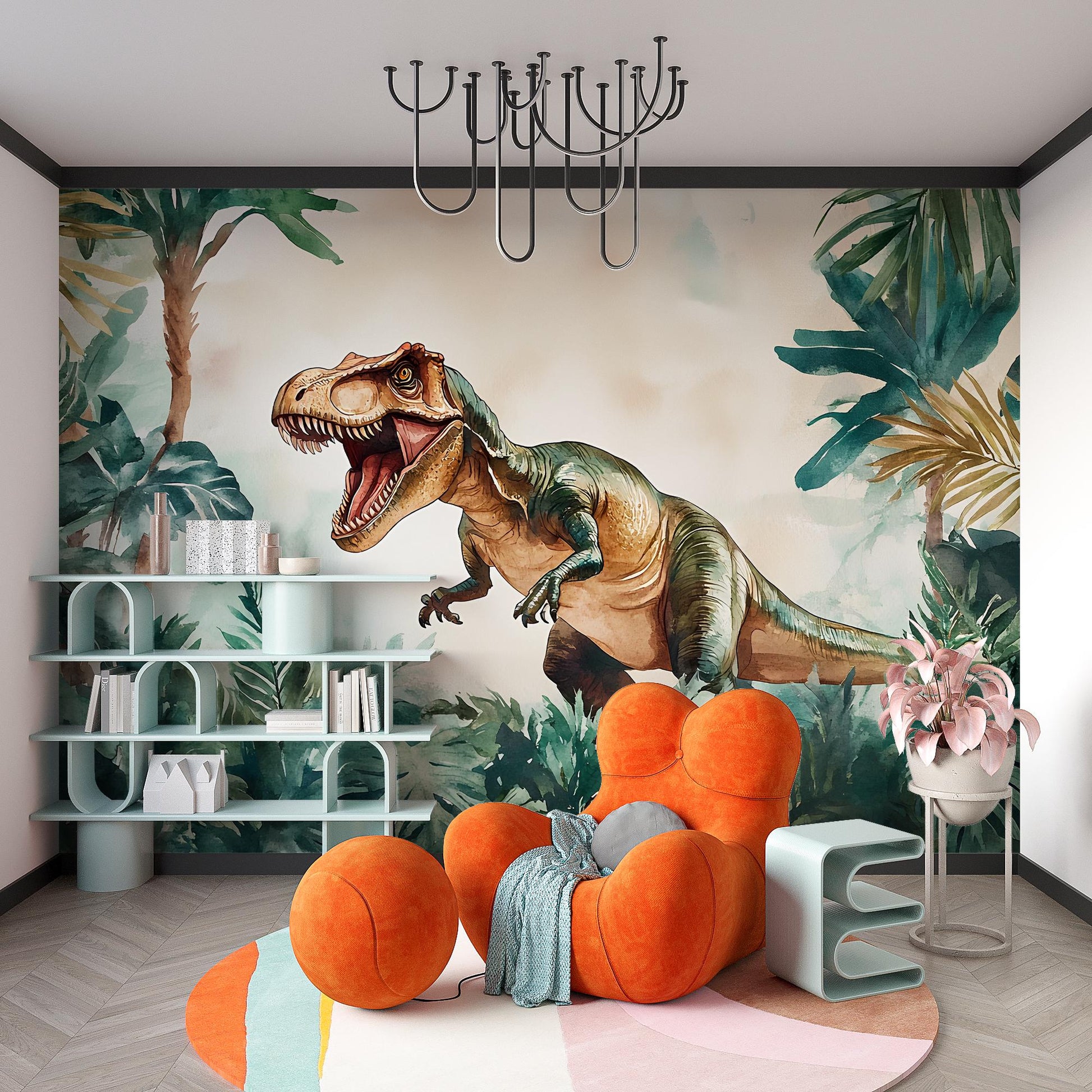 Dinosaur Wall Mural for Kids Room – T-Rex Jungle Wallpaper – Boys Nursery Wall Art – Prehistoric Safari Theme Décor