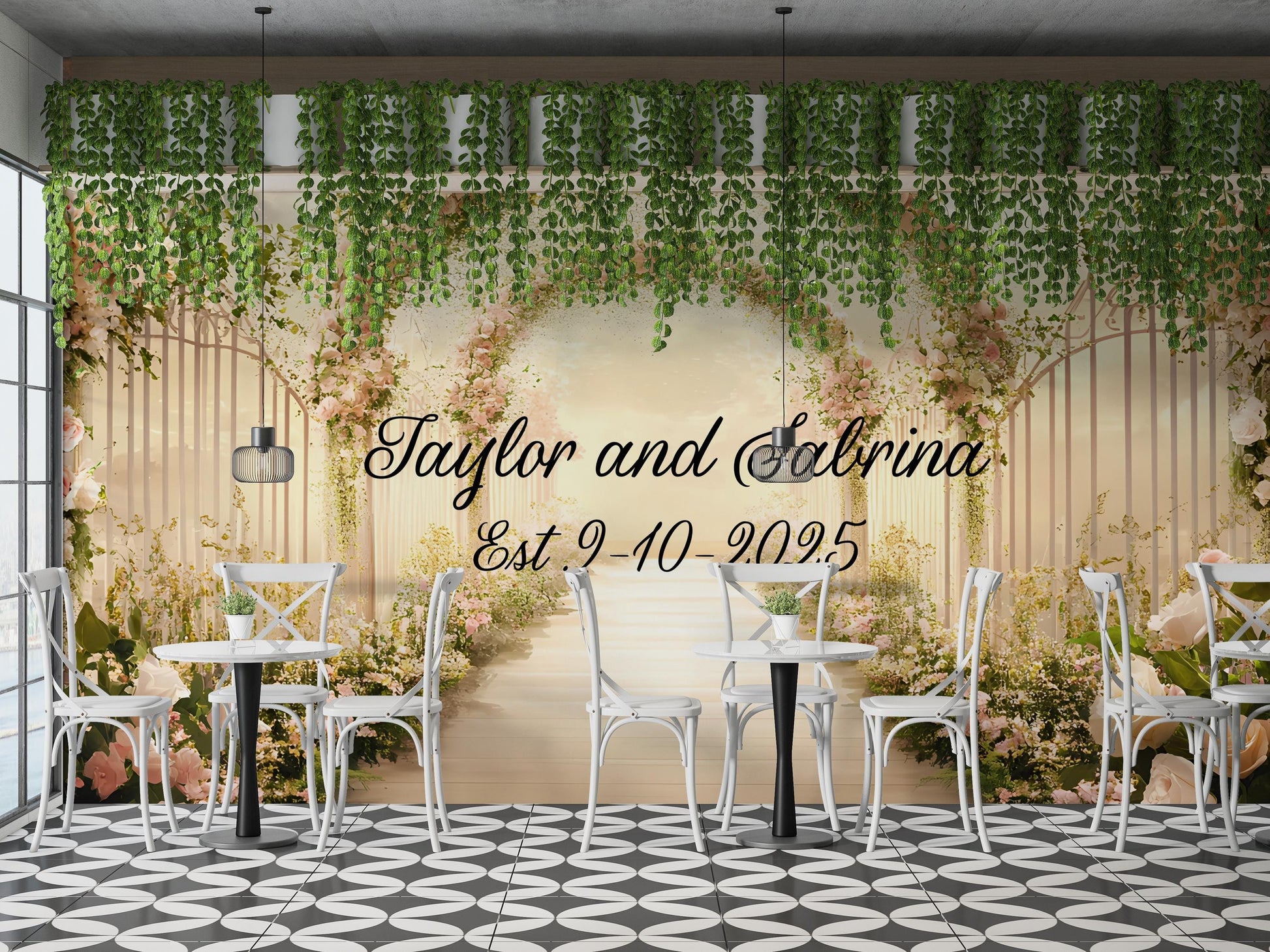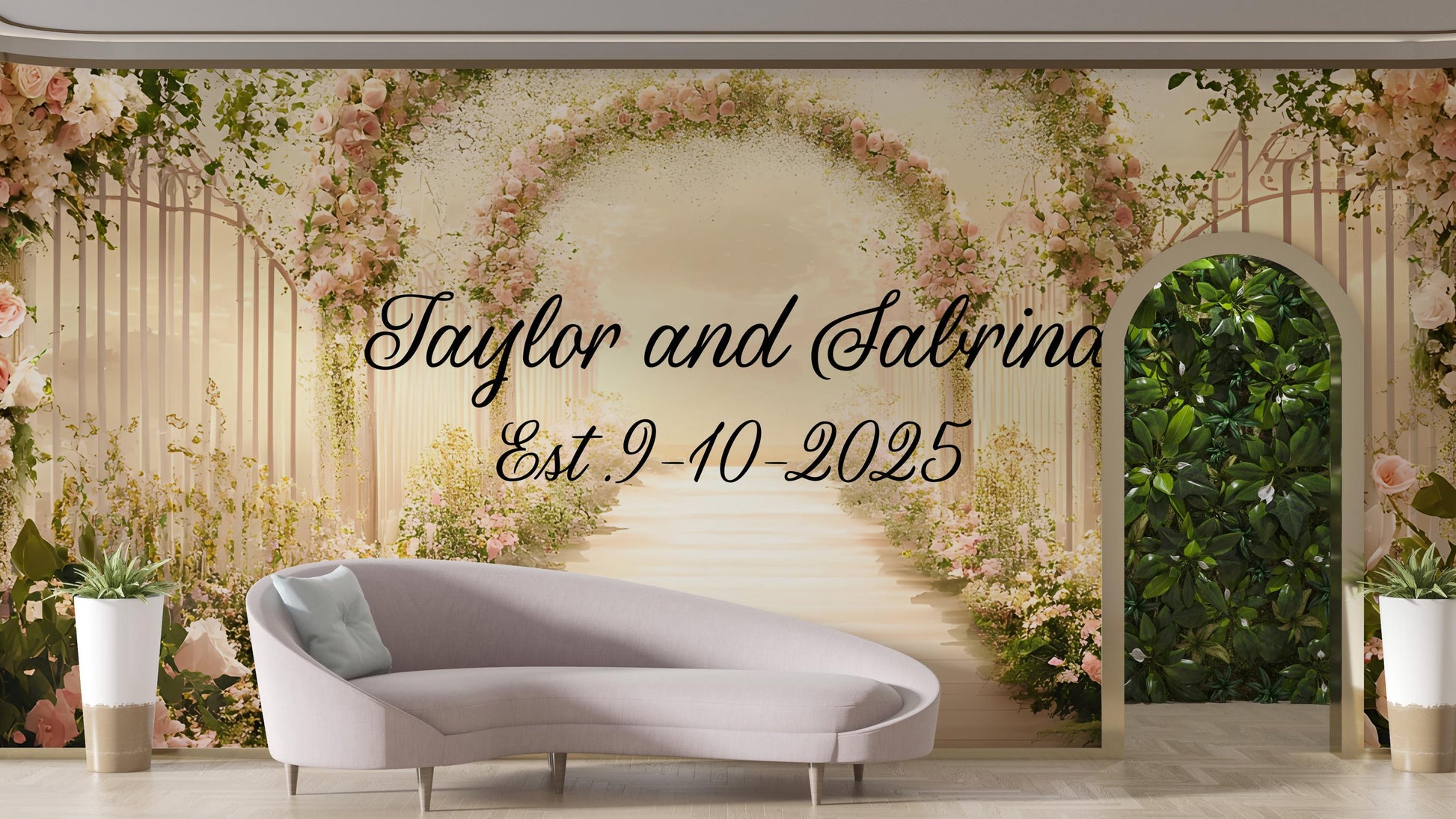 Elegant Floral Wedding Backdrop Sign - Personalized Arch Design with Names & Date - Custom Wedding Decor - Est. Sign