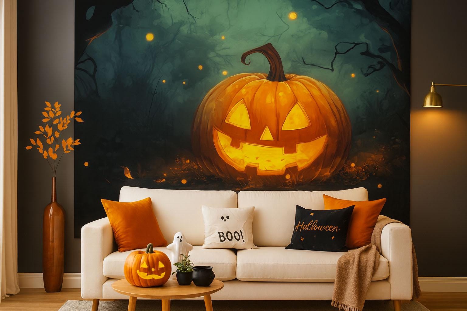 Jack-O’-Lantern Halloween Wall Mural – Cozy Autumn Decor