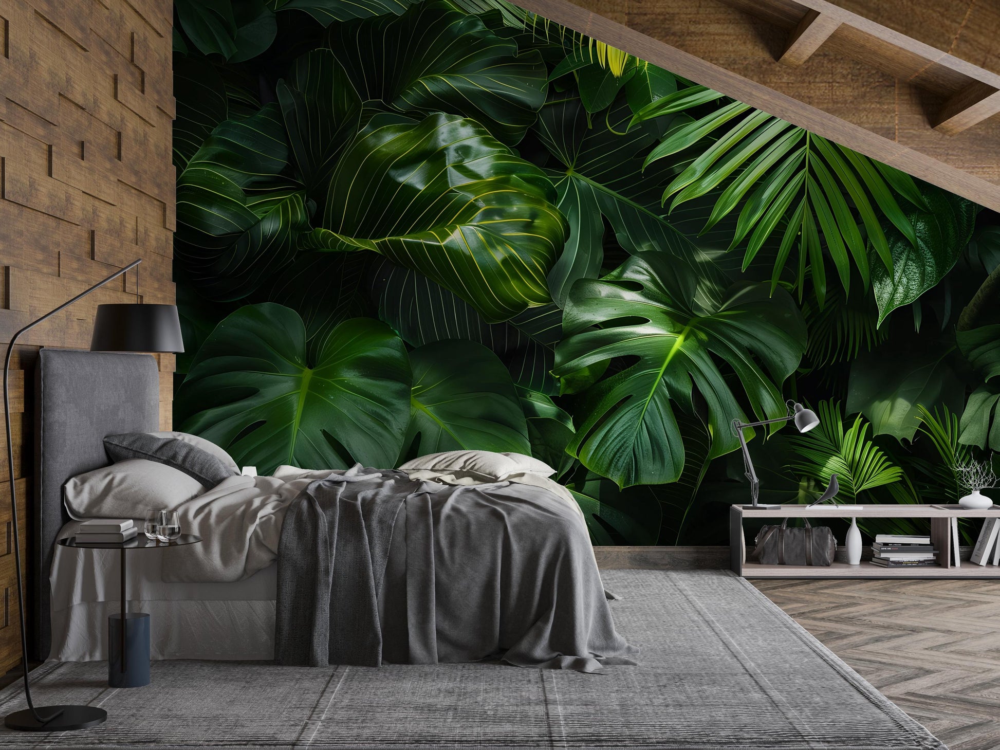 Jungle Leaf Wall Art – Tropical Green Monstera and Palm Print, Botanical Nature Decor for Living Room, Bedroom or Office