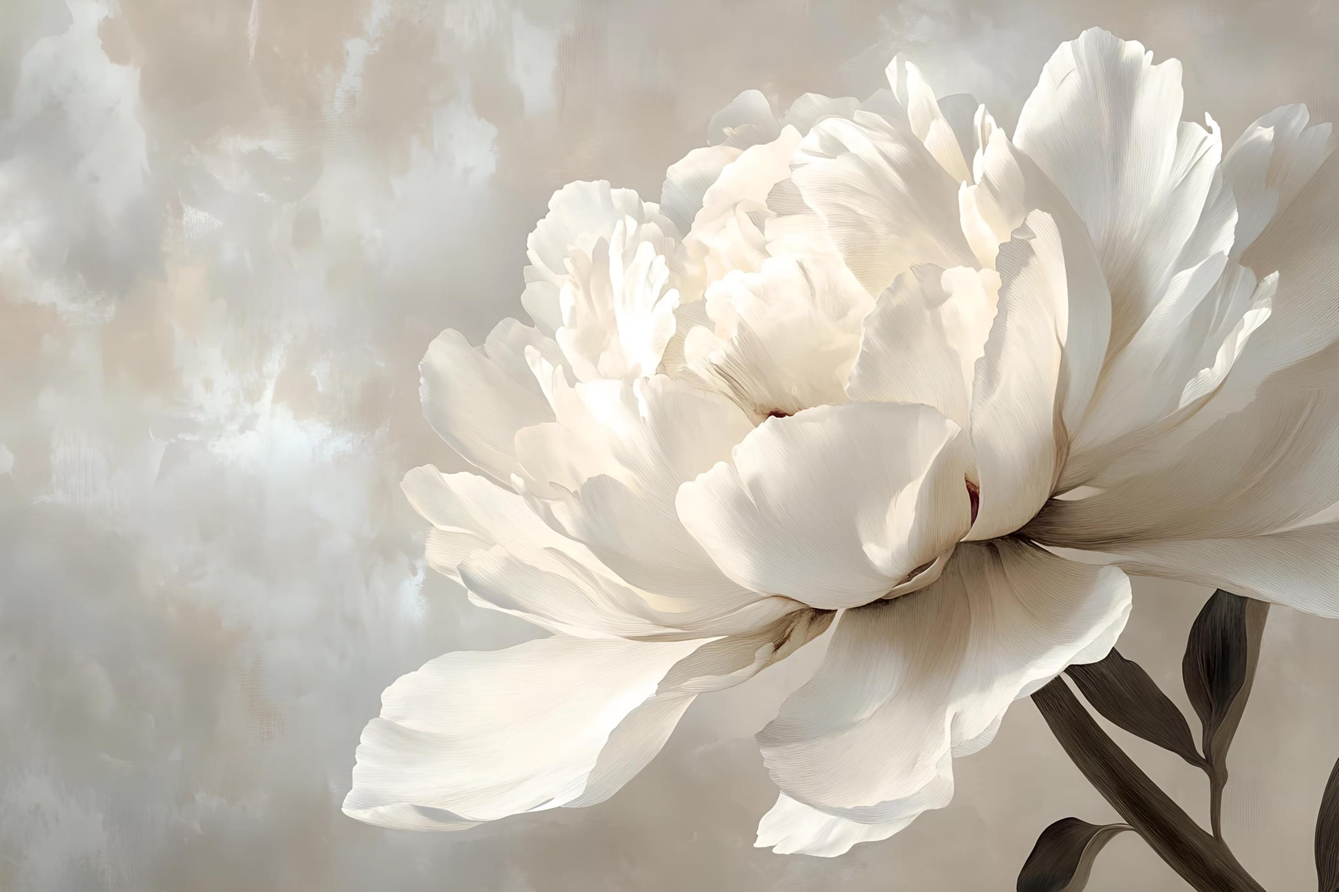 Large White Peony Wall Mural – Elegant Neutral Floral Wallpaper for Bedroom Accent