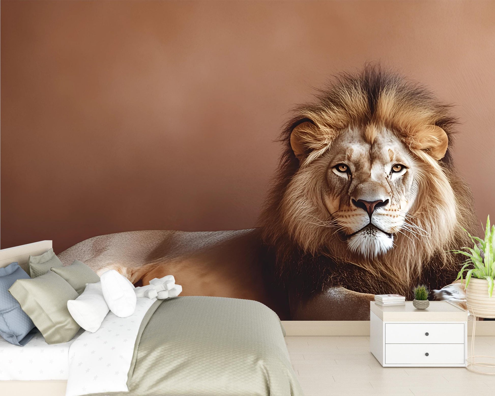 Majestic Lion Wall Mural | Safari Animal Bedroom Decor | King of Jungle Wall Art | Large Jungle Cat Wallpaper | Nature Theme Mural Vn274