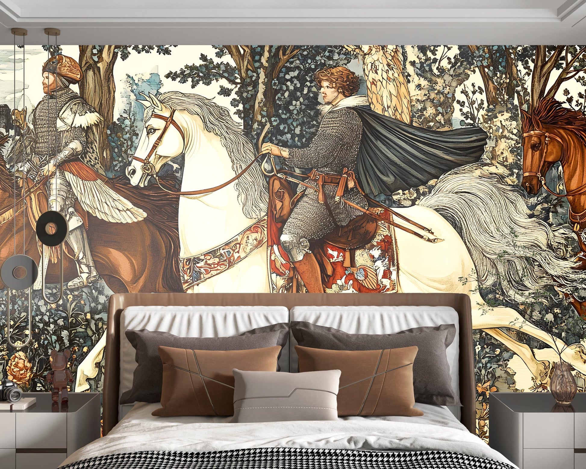 Medieval Knight Wall Mural | Tapestry-Style Art Wallpaper | Historical Horsemen Scene for Bedroom or Living Room Decor