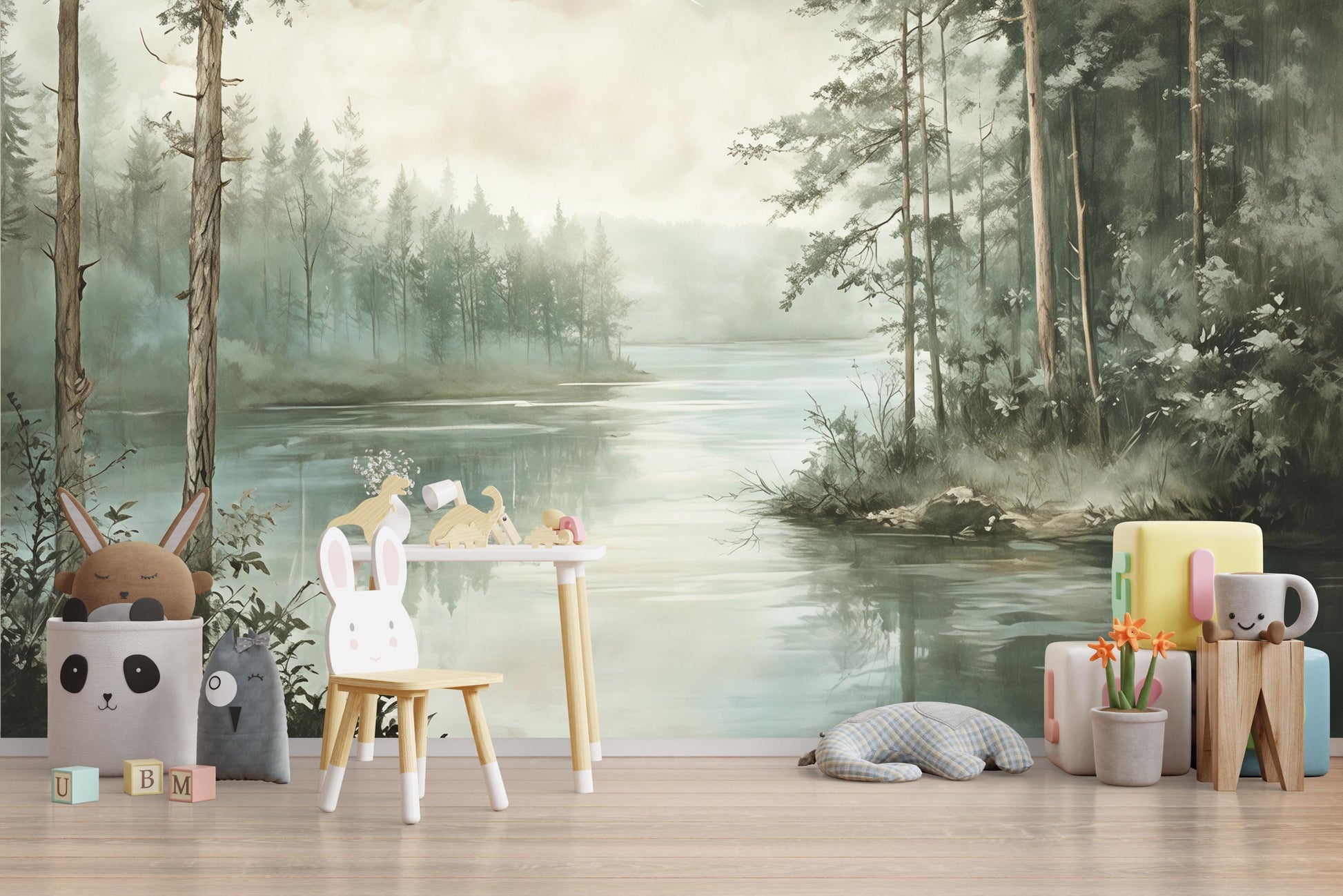Misty Forest Lake Wall Mural – Nature Landscape Wallpaper