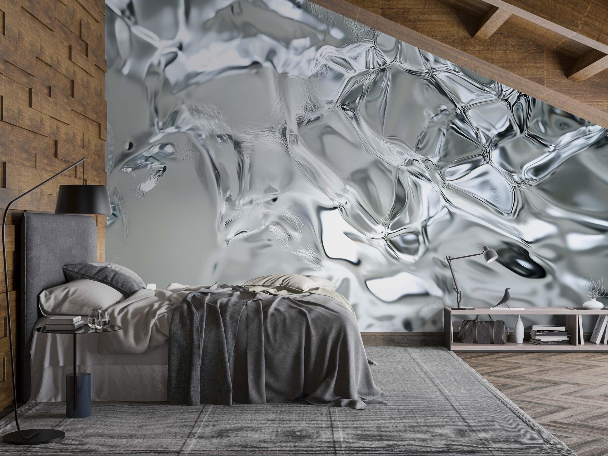 Modern Abstract Ice Texture Wall Mural – Silver Grey 3D Effect Wallpaper for Bedroom or Living Room