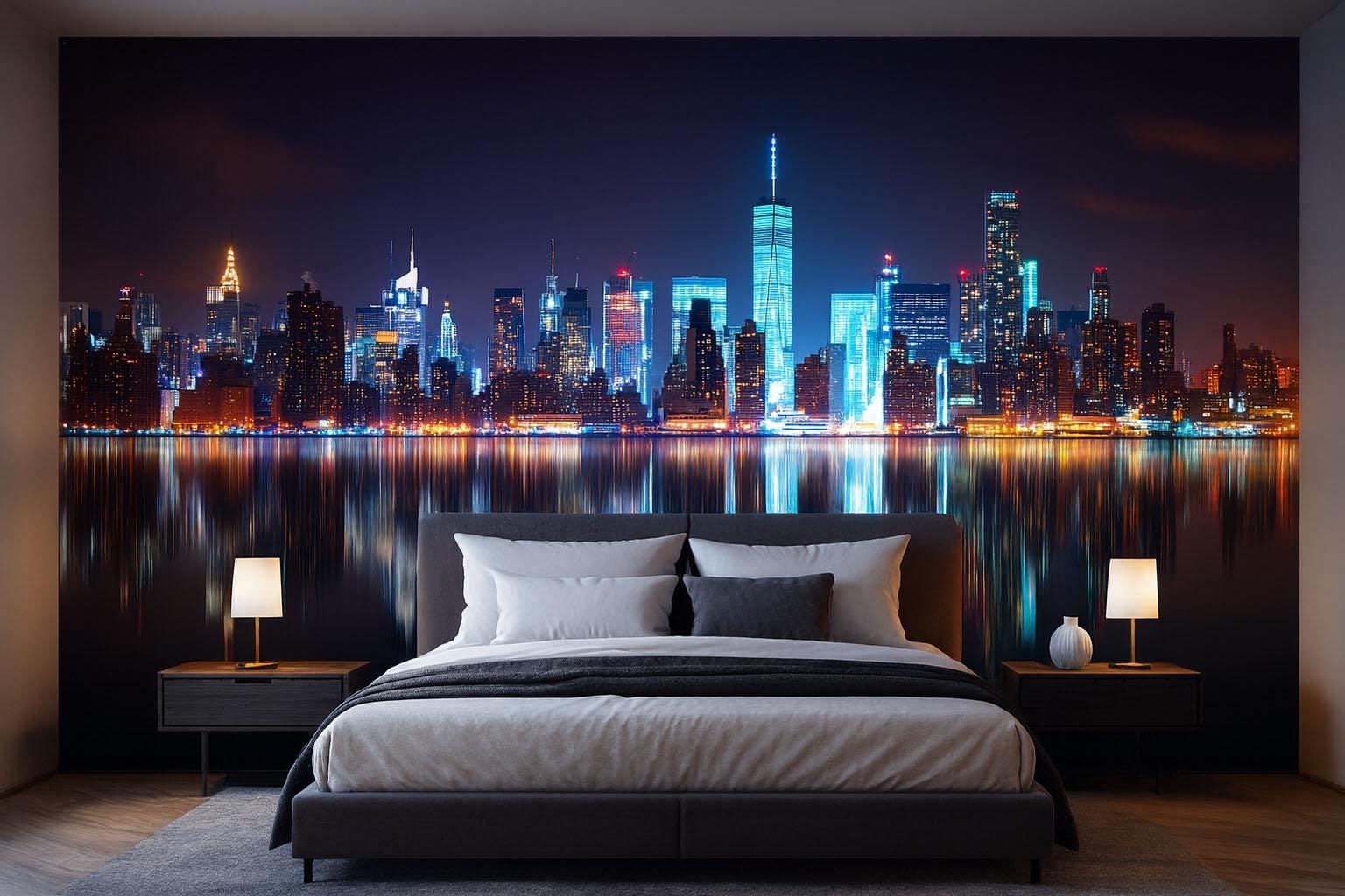 Perfect for bedrooms, living rooms, or offices, the design captures the magic of New York nightlife, reflecting beautifully on the water for extra depth and elegance.