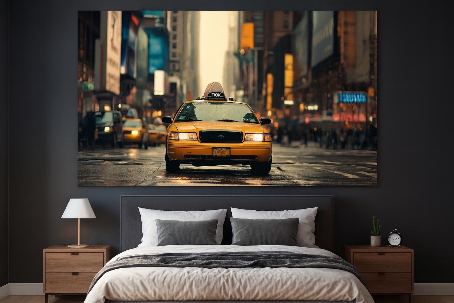 Capture the essence of New York City with this bold yellow taxi wall mural. Featuring a close-up of the iconic NYC cab in the heart of the city streets, this mural brings the vibrant energy and urban charm of New York into your home or office.