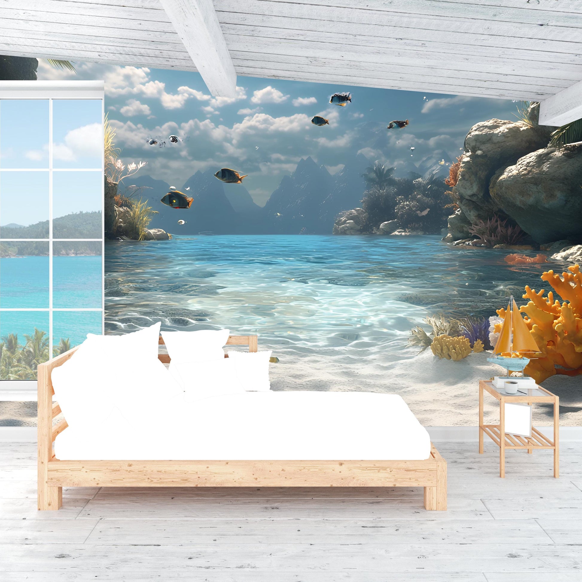 Ocean Paradise Wall Mural | 3D Tropical Beach Wallpaper for Kids Room | Underwater Fish Landscape Bedroom Decor