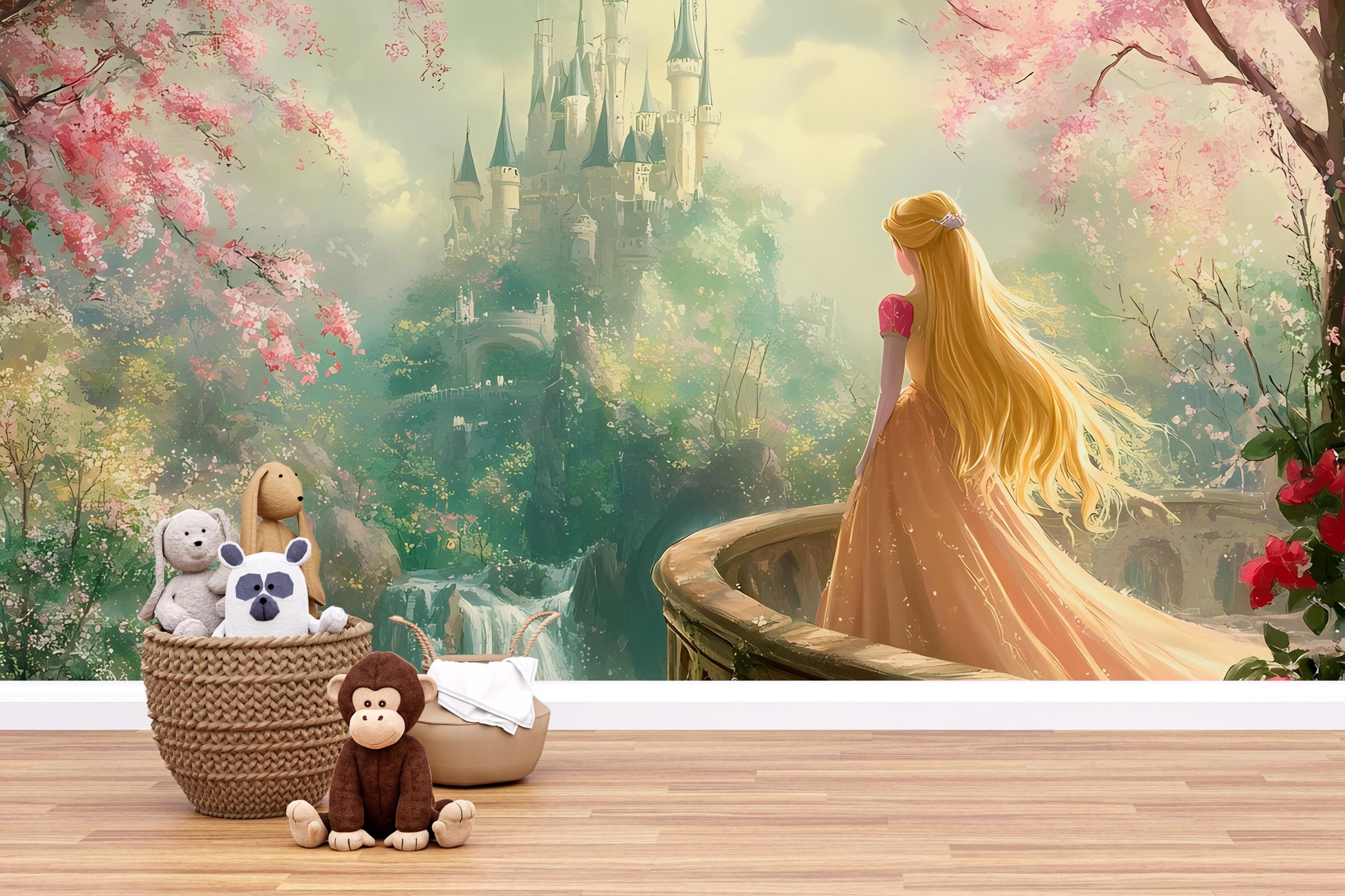 Transform your child’s room into a magical fairytale with this stunning Princess Castle Wall Mural. Featuring a dreamy princess gazing at an enchanting castle surrounded by cherry blossoms, this high-quality mural adds charm and wonder to nurseries, playrooms, or little girls’ bedrooms. Perfect for inspiring imagination and creating a serene, storybook setting. Printed with vivid, non-toxic inks on durable wallpaper material for easy application and long-lasting beauty.