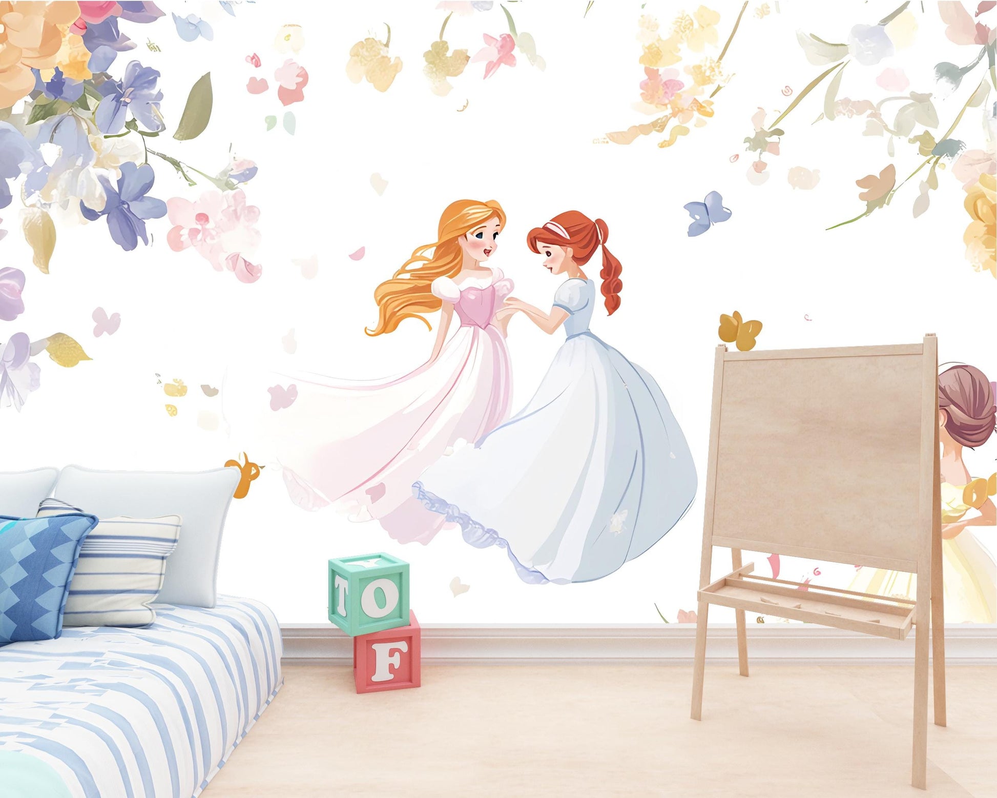 Transform your child's room into a dreamy fairy tale with our Princess Floral Wall Mural. Featuring soft pastel flowers and illustrated princess characters, this peel-and-stick or traditional wallpaper is perfect for girls' bedrooms, playrooms, or nurseries. The charming design sparks imagination and brings a magical atmosphere to any space.