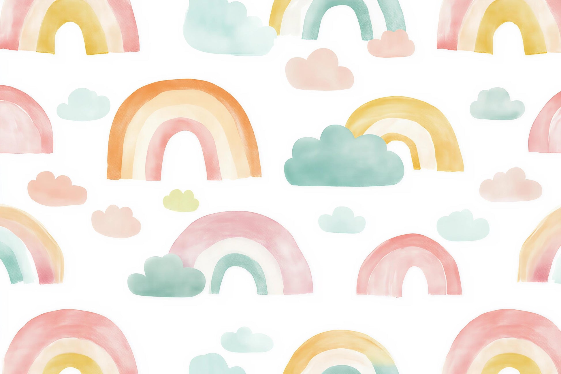 Bring joy and color to your little one’s space with this watercolor rainbow wall mural. Featuring soft pastel rainbows and fluffy clouds on a white background, this mural creates a playful and uplifting atmosphere perfect for nurseries, kids’ bedrooms, or playrooms.
