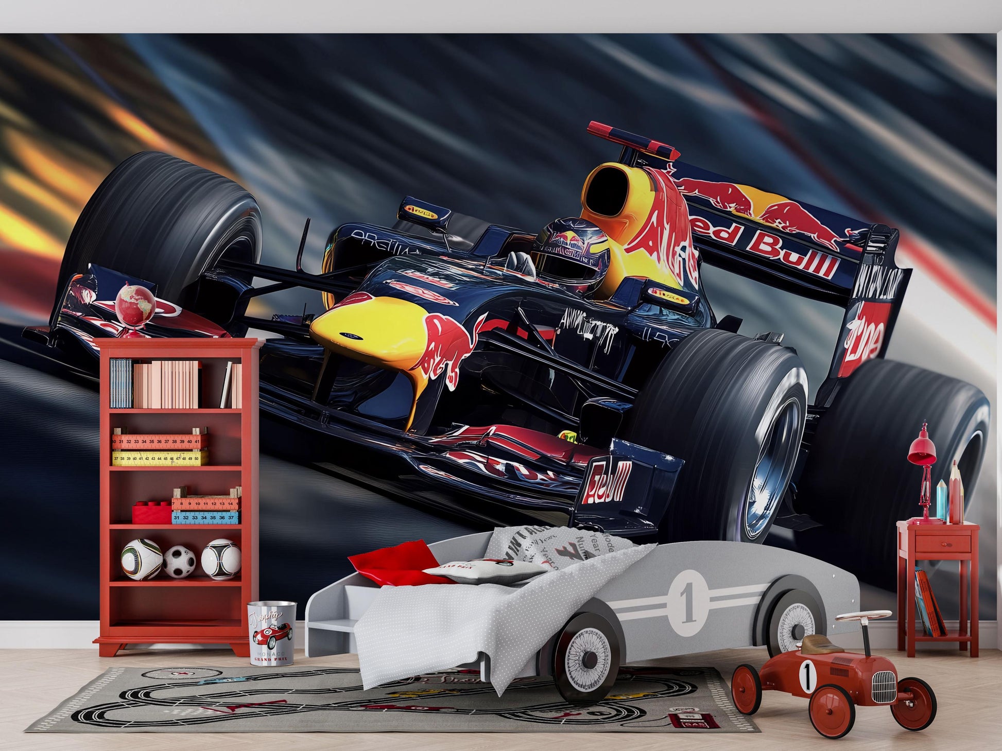 Red Bull Formula 1 Wall Mural – Racing Car Wallpaper for Boys Bedroom & Gamer Room