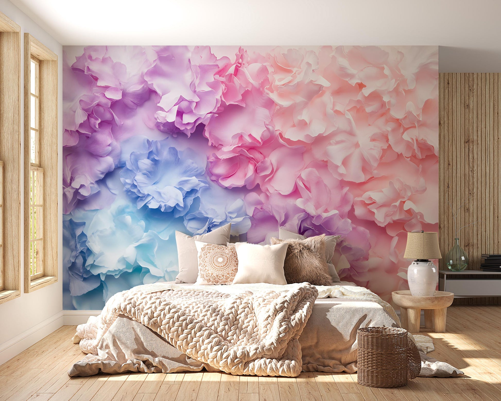 Transform your space with this breathtaking 3D floral wall mural in dreamy pastel hues of pink, purple, and blue. Featuring lush, oversized flower petals with a stunning depth effect, this wallpaper adds a romantic and modern vibe to any room. Ideal for bedrooms, living rooms, studios, or feature walls, the soft tones blend perfectly with contemporary and rustic interiors.