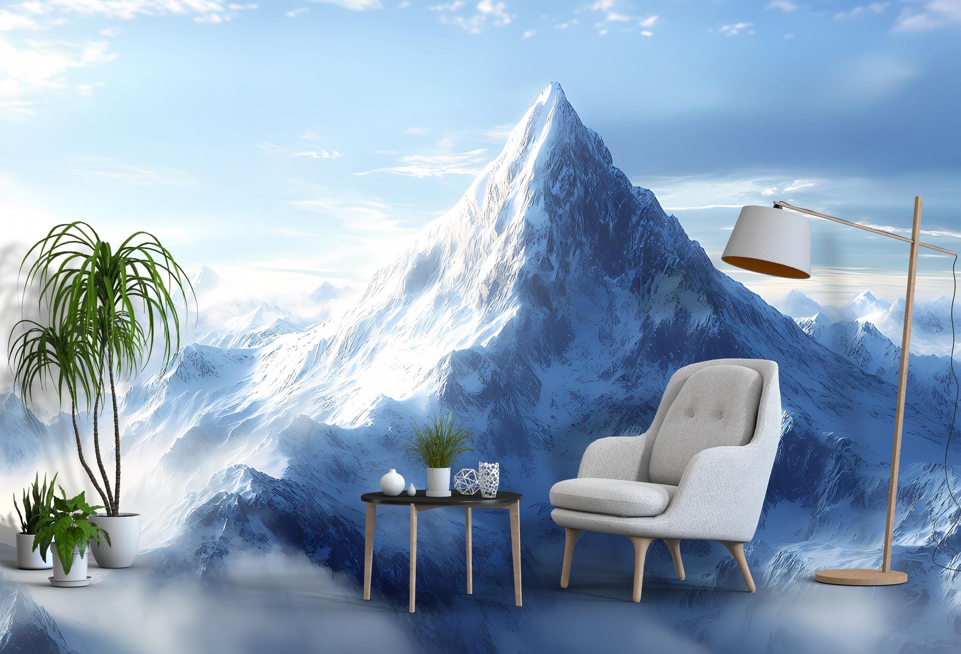 Transform your living space with this breathtaking snowy mountain wall mural. Featuring a majestic alpine peak under a serene blue sky, this high-resolution wallpaper creates a stunning focal point in any modern home or office. Ideal for nature lovers, this mural adds depth, calm, and grandeur to your décor. Perfect for living rooms, lobbies, studios, and more. Easy to install and remove, this mural turns your wall into a window to the wilderness.