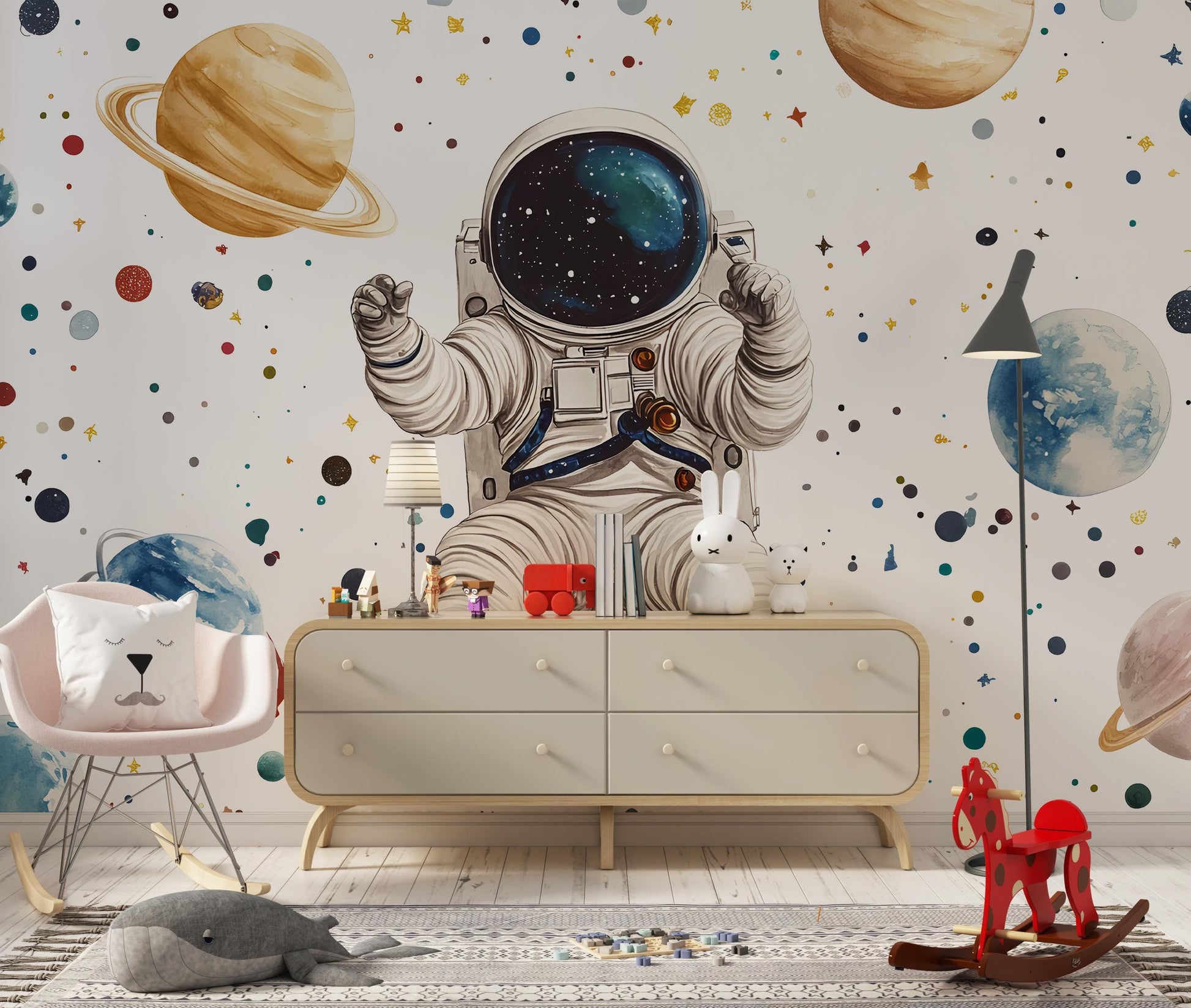 Space Astronaut Wall Mural for Kids Room – Outer Space Planets Galaxy Wallpaper – Nursery Space Theme Decor for Boys or Girls
