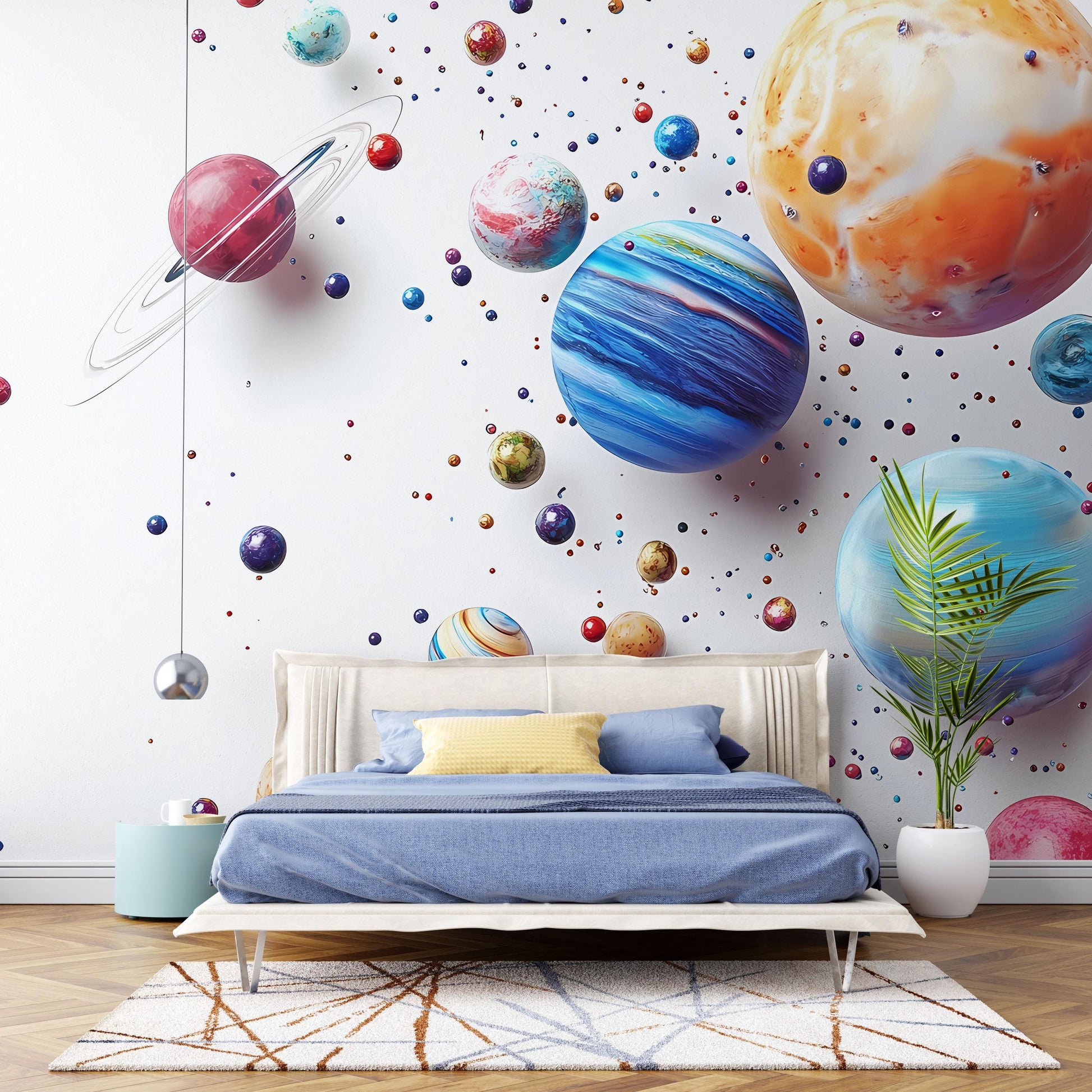 Transform your bedroom into a cosmic escape with this stunning Space Planet Mural Wall Art. Featuring vibrant, high-resolution planets and galactic elements, this wallpaper is perfect for kids’ rooms, nurseries, or anyone who loves astronomy. Printed on premium materials, it's easy to install and instantly elevates any modern interior. Ideal for space lovers, this mural blends imagination with decor.