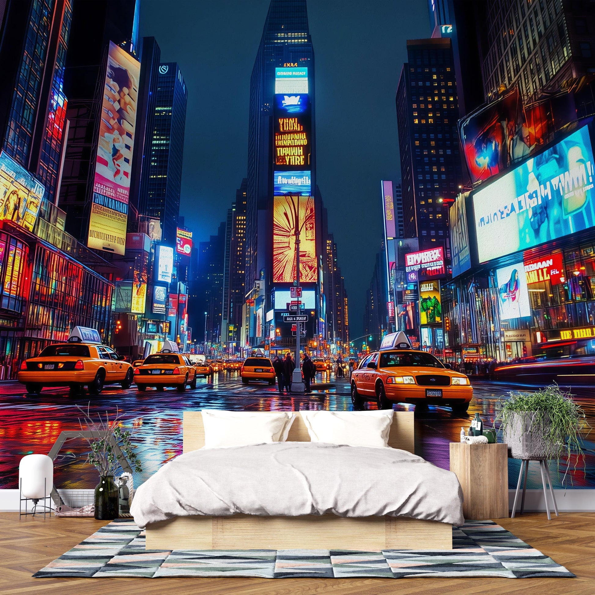 Times Square Wall Mural – NYC Night City Taxi Lights Wallpaper