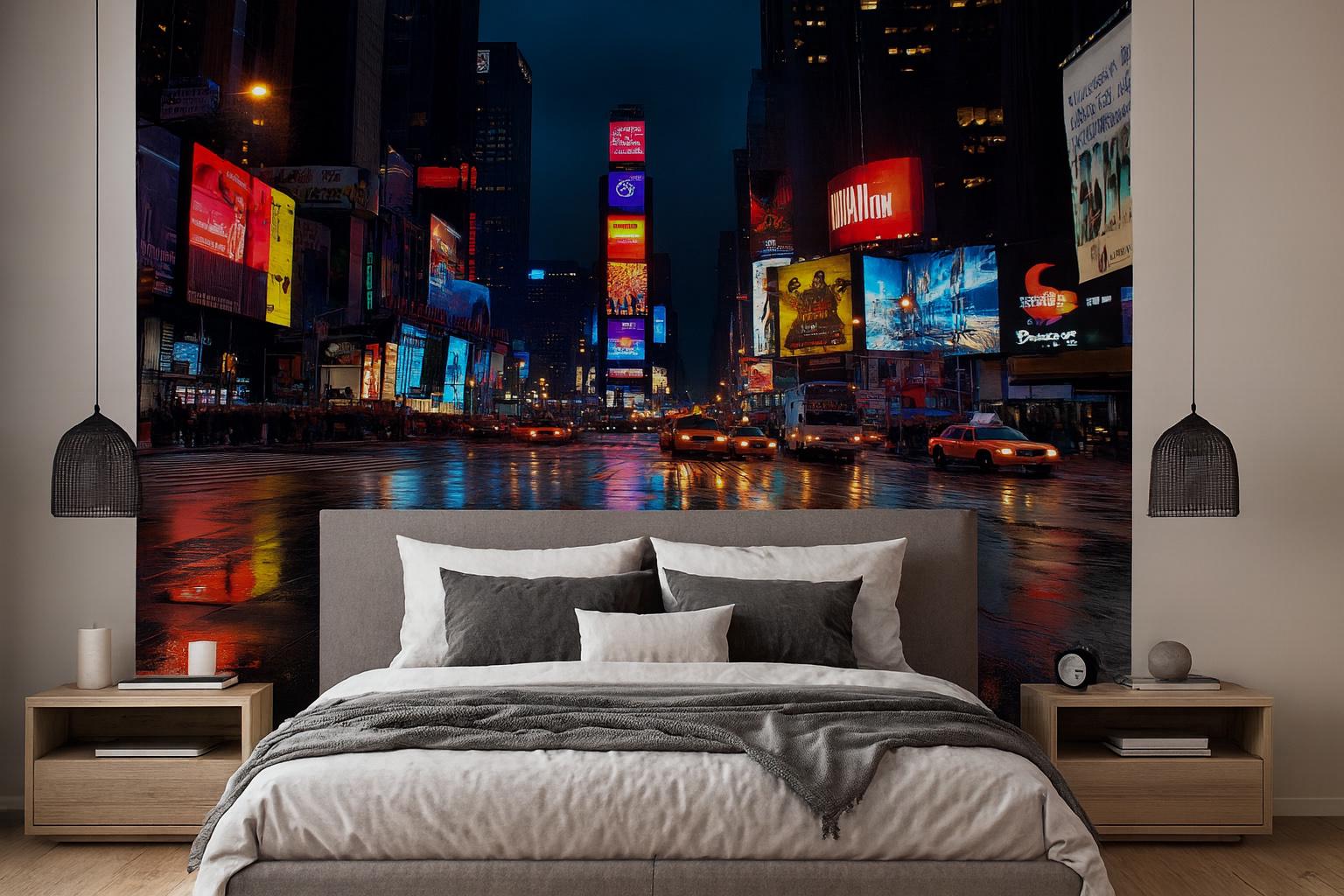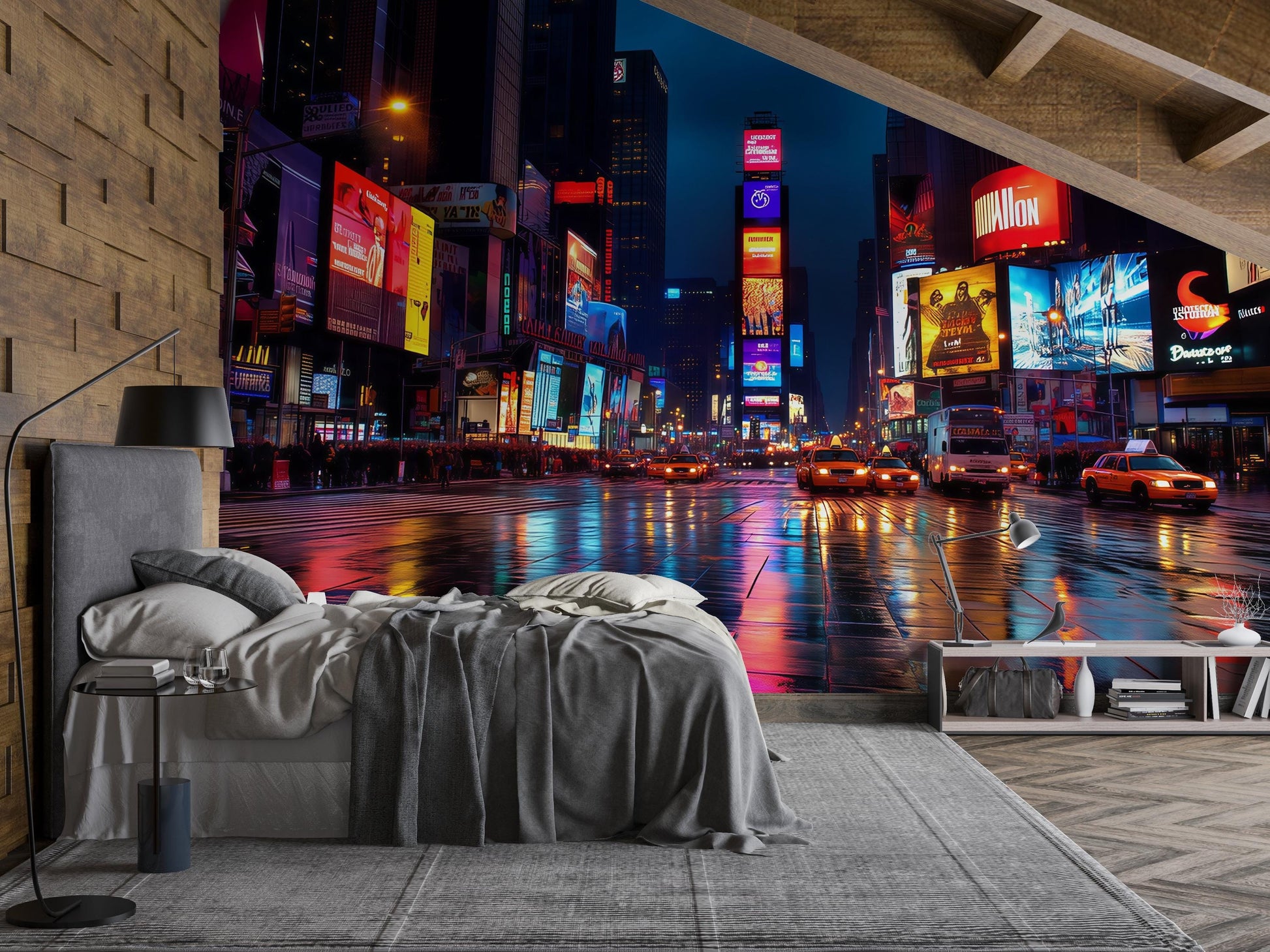 Bring the energy of New York City into your space with this stunning Times Square wall mural. Featuring glowing neon billboards, iconic yellow taxis, and the vibrant pulse of the city at night, this mural captures the heart of Manhattan.
