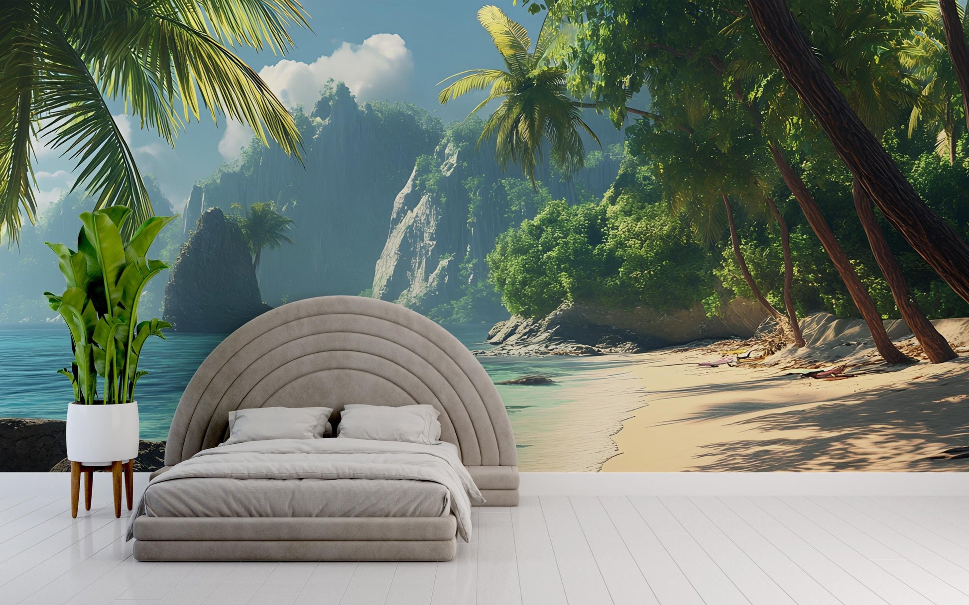 Transform your bedroom into a tranquil paradise with this stunning Tropical Beach Wall Mural. Featuring crystal-clear turquoise waters, lush palm trees, and a sandy shoreline, this high-quality wall art brings vacation vibes right into your home. Ideal for beach lovers and coastal décor themes, it adds depth and serenity to any room. Perfect for bedrooms, living rooms, or relaxation spaces. Printed on premium material for easy application and long-lasting beauty.