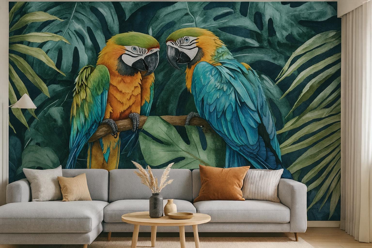 Tropical Parrots Wall Art – Colorful Jungle Bird Print