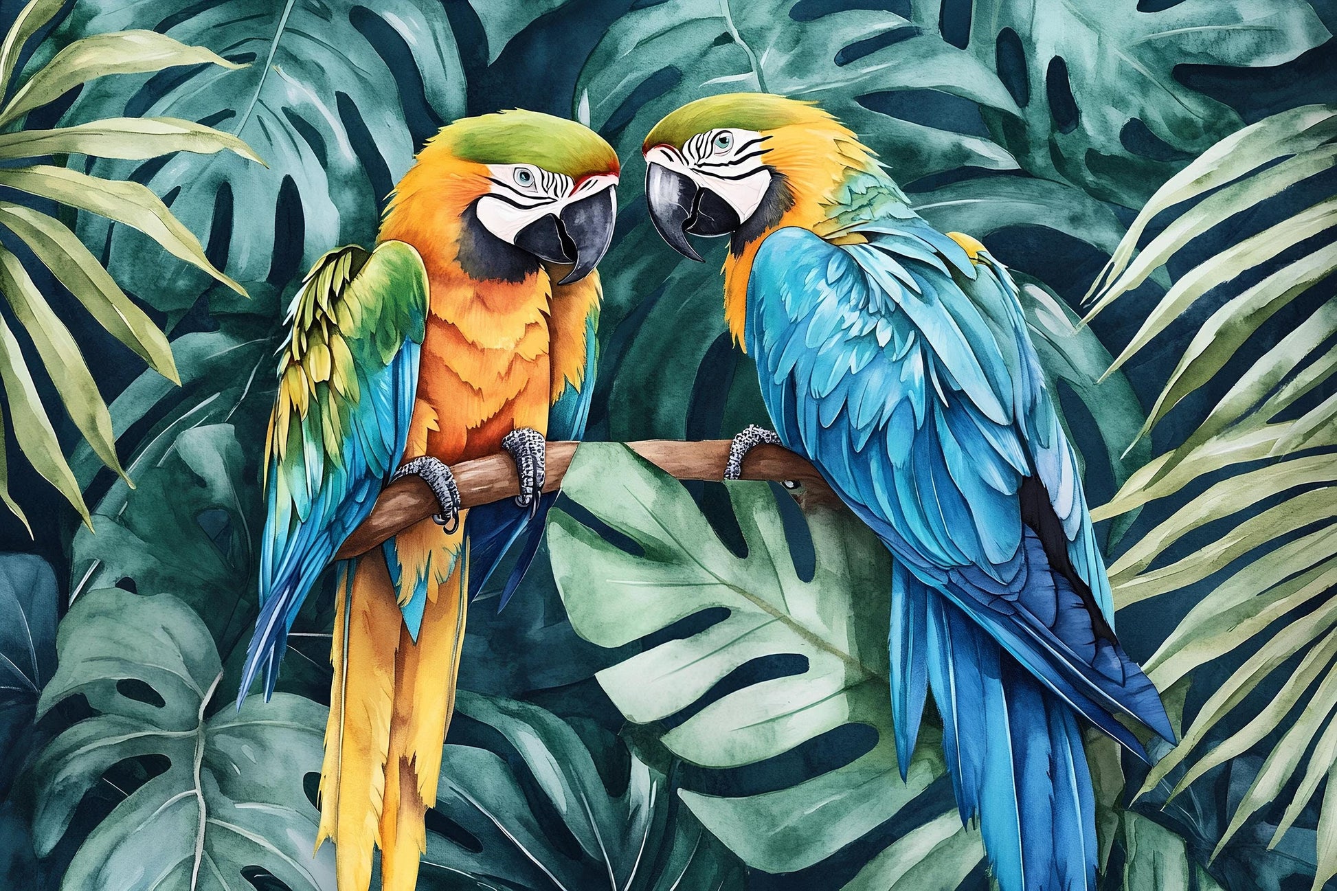 Bring the vibrant beauty of the tropics into your home with this colorful parrot wall art print. Featuring four exotic parrots perched against lush green jungle leaves, this piece is perfect for adding a bold pop of color to your décor. Ideal for living rooms, offices, bedrooms, or tropical-themed interiors, it makes a striking statement piece or thoughtful gift for bird and nature lovers.
