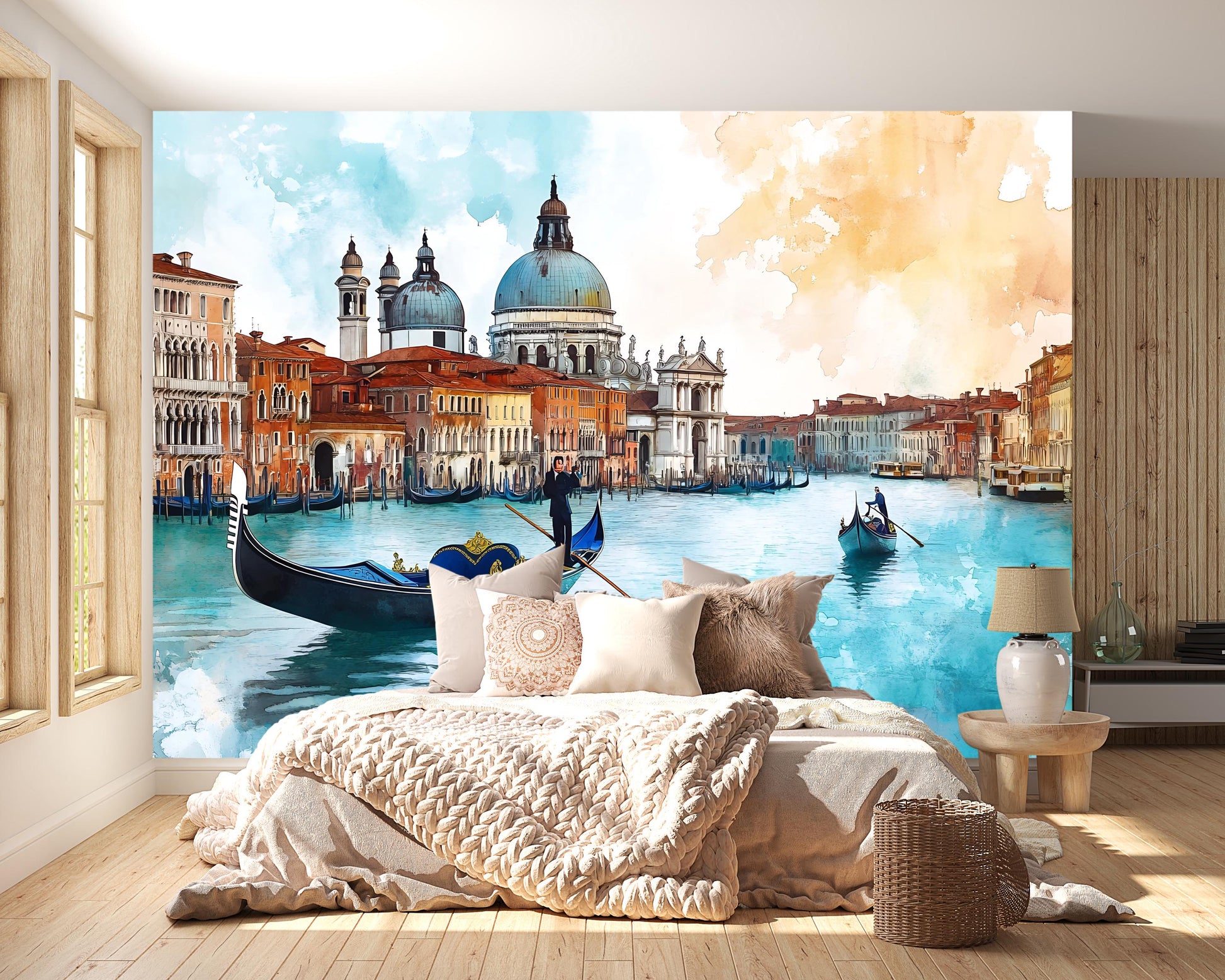 Venice Gondola Basilica Wall Mural – Watercolor Italy Grand Canal Wallpaper for Living Room & Bedroom