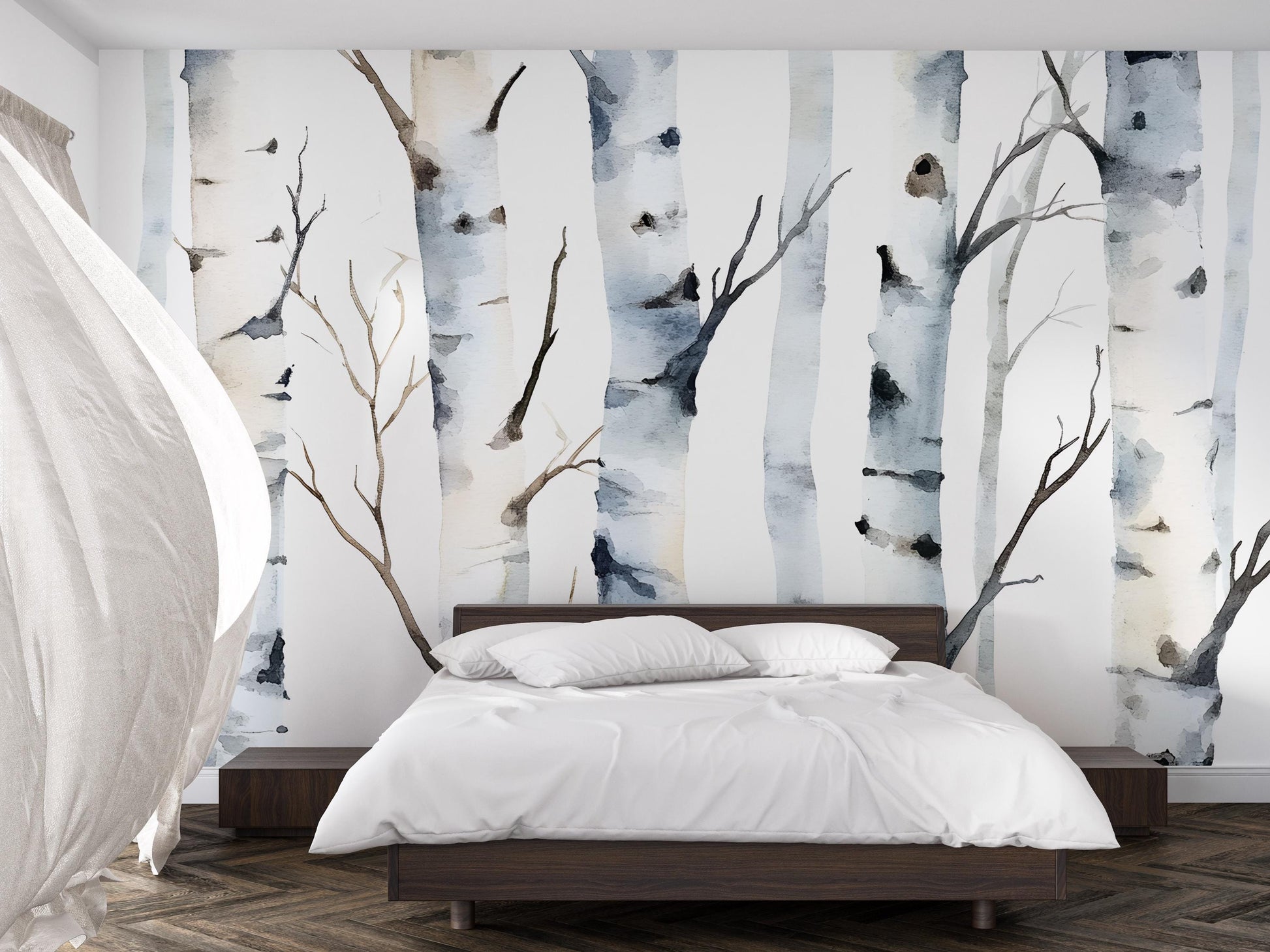 Transform your bedroom or living space with this elegant Watercolor Birch Tree Wall Mural. Featuring a serene forest of birch trees in soft, natural tones, this peel-and-stick mural brings the calming beauty of nature indoors. Perfect for modern, Scandinavian, or rustic interiors.
