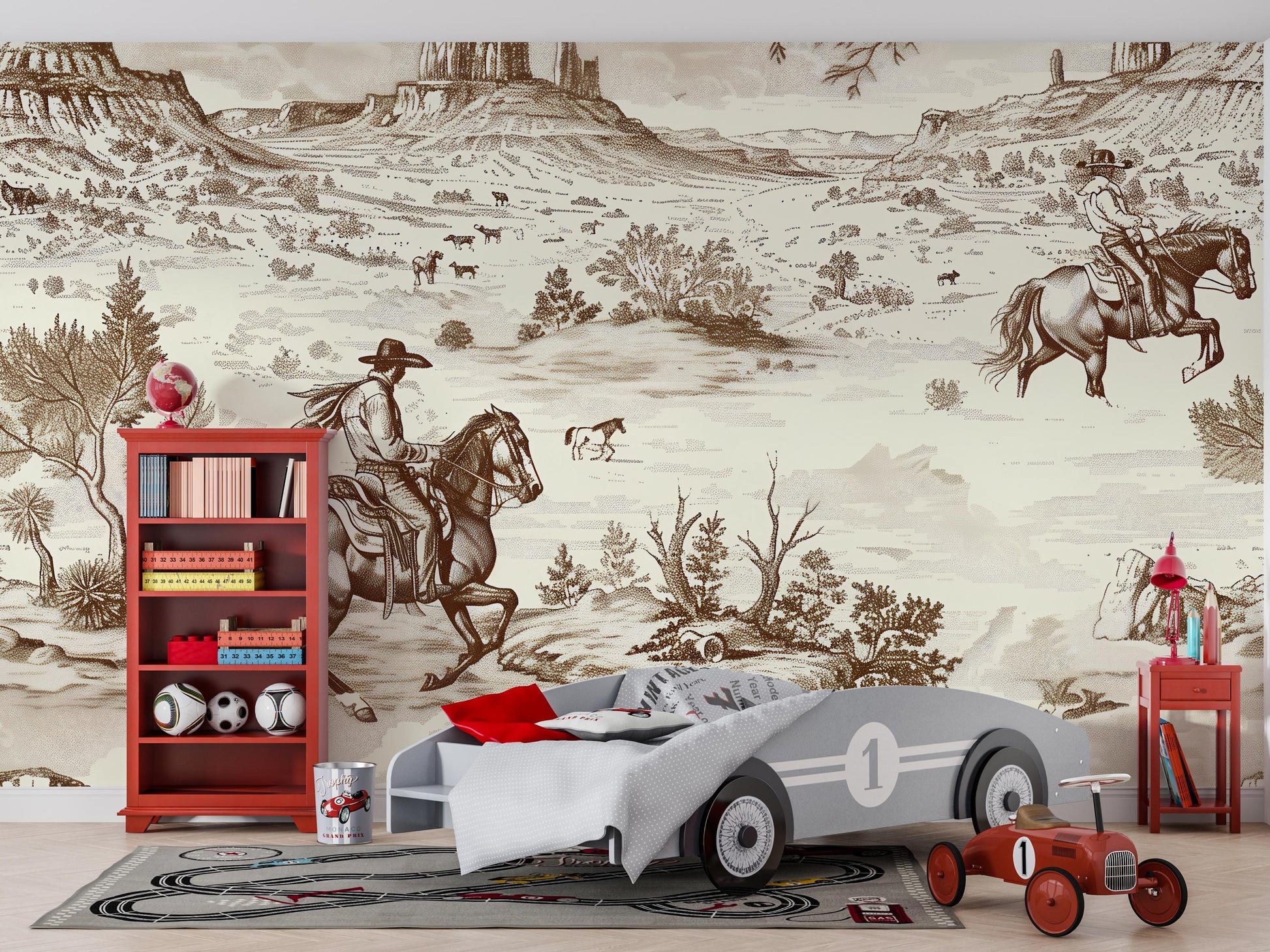 Western Cowboy Horse Wall Mural | Rustic Western Wallpaper | Kids Cowboy Room Decor