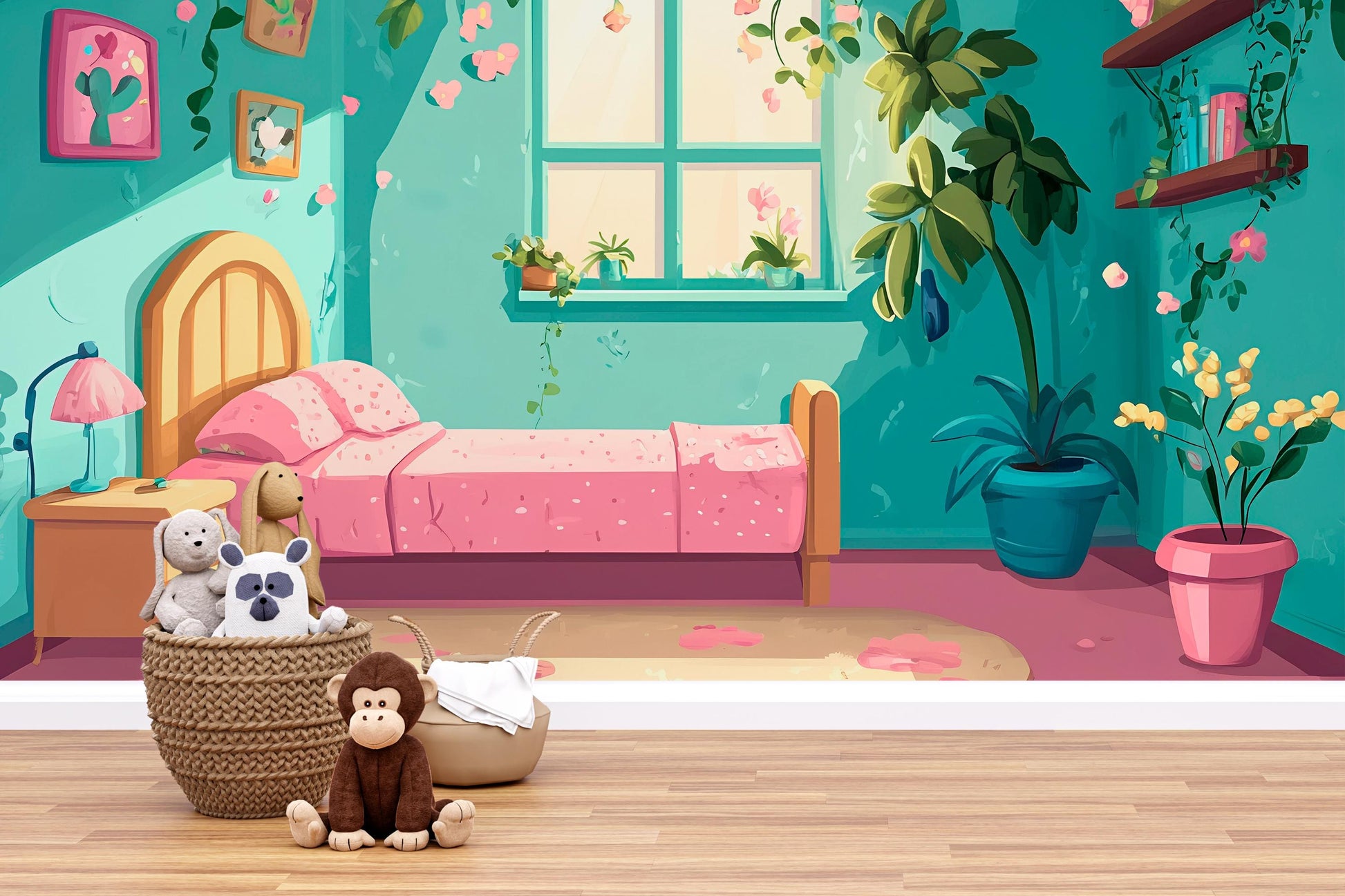 Transform your child’s bedroom into a dreamy garden retreat with this whimsical wall mural. Featuring vibrant vines, blooming flowers, and a cozy bed scene with soft pinks and lush greenery, this mural creates a magical and calming atmosphere. Perfect for nurseries, playrooms, or little girls' bedrooms, this art piece adds charm and color to any space. Ideal for parents looking to inspire creativity and tranquility in their child’s environment.
