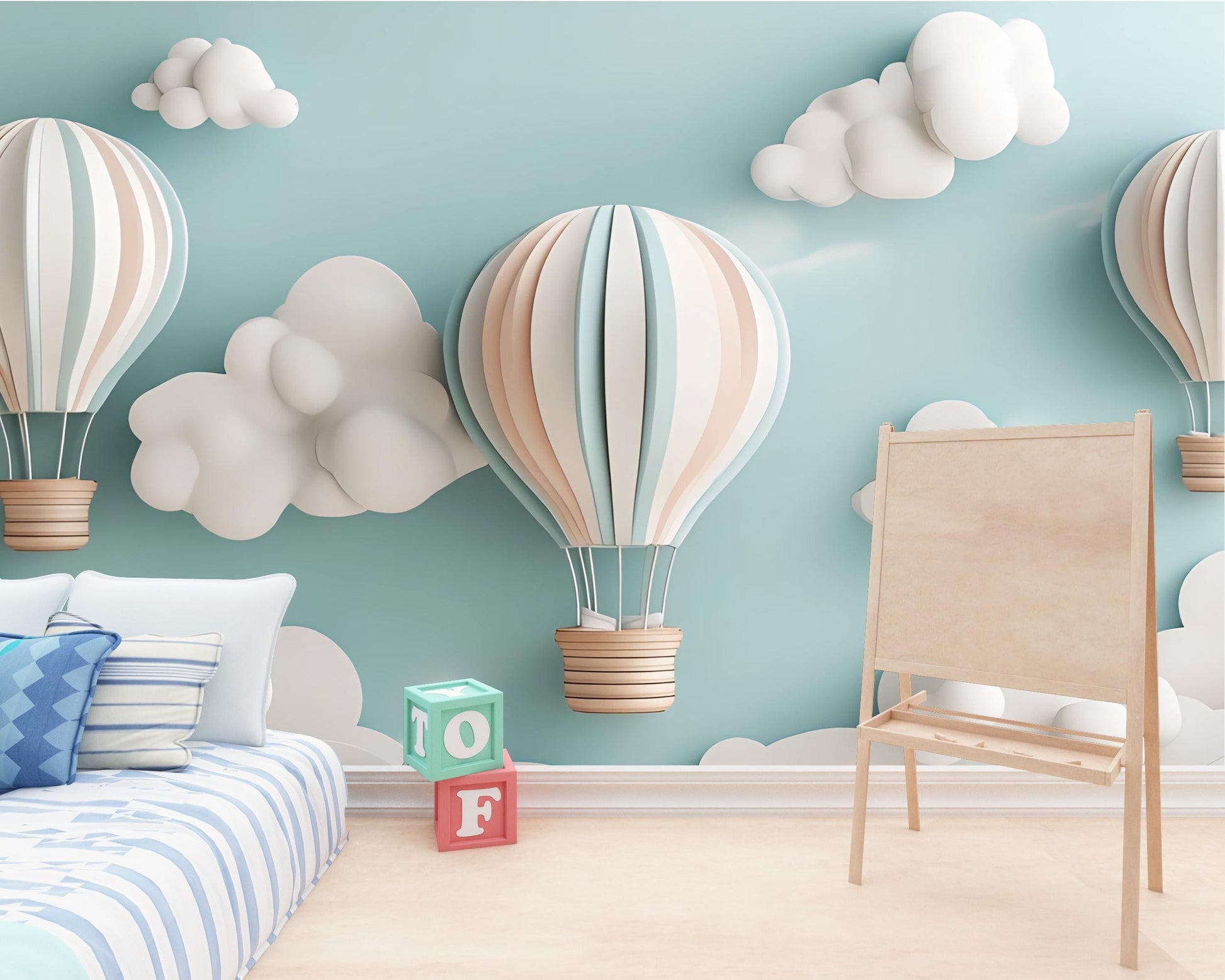 Transform your child's room into a dreamy wonderland with this whimsical hot air balloon wall mural. Featuring soft pastel colors, fluffy clouds, and a scenic sky, this wallpaper creates a peaceful and imaginative space perfect for nurseries, toddler rooms, or play areas. Ideal for baby shower gifts or nursery makeovers, this mural brings a calming and playful atmosphere to any child’s space.